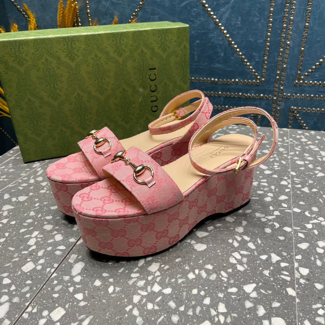 GG HORSEBIT FLATFORM SANDAL PASTEL PINK CALFSKIN