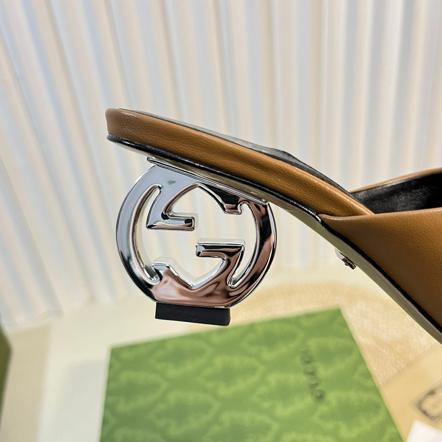 GG Women's G pointed silver-letter Logo slingback Nude Brown