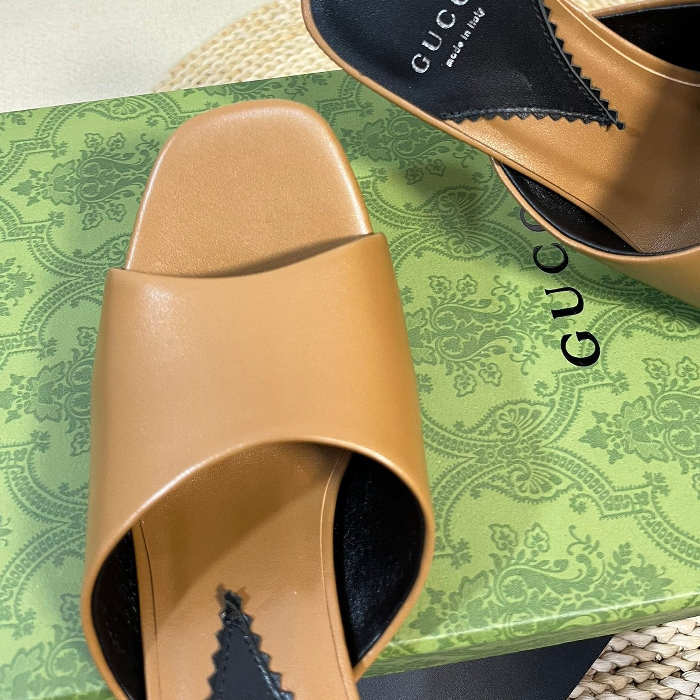 GG Women's G plain leather logo Slingbacks Gingerbread brown