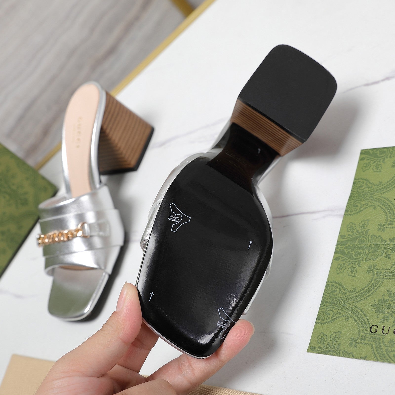 GG Women's Horsebit mid-heel slide sandal in Silver