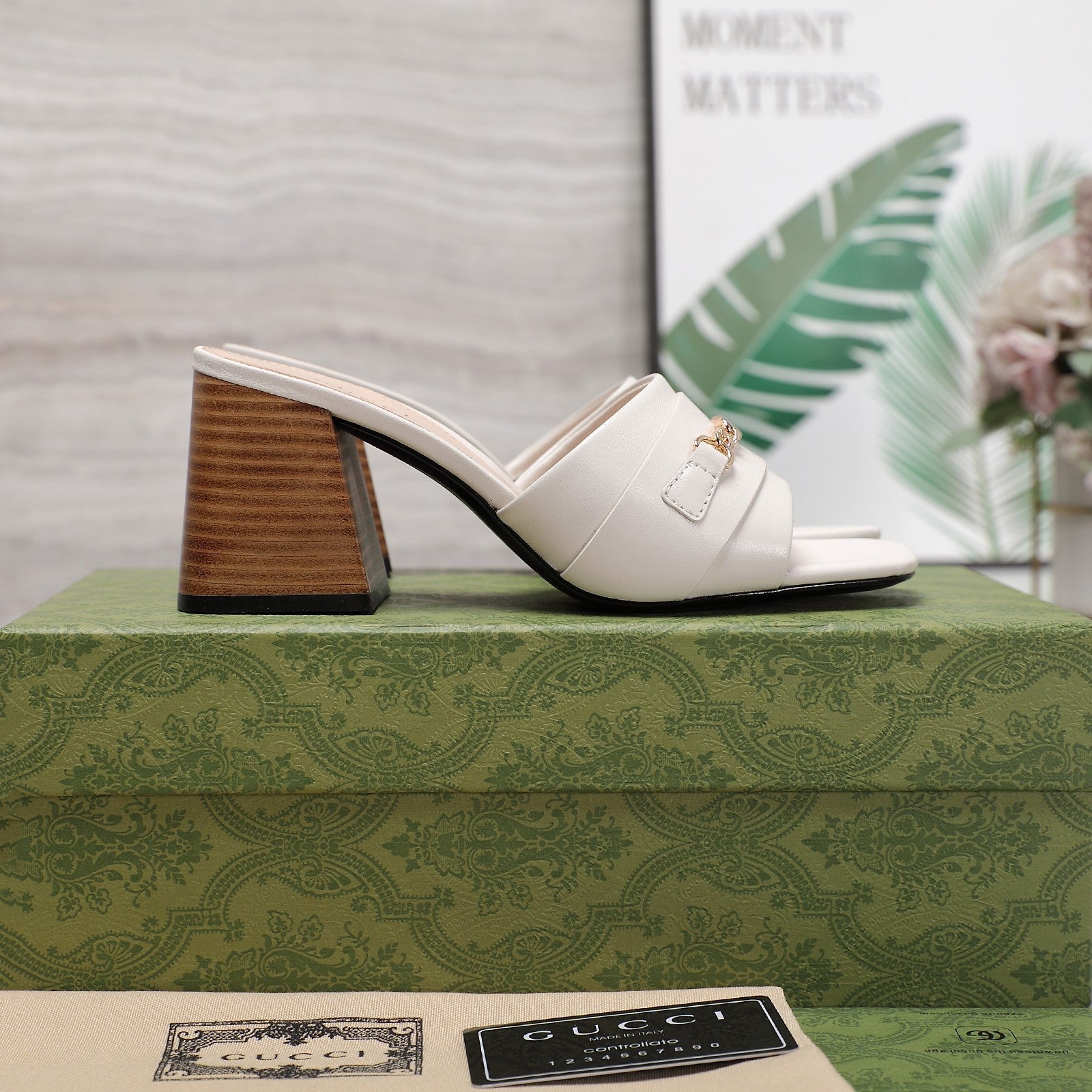 GG Women's Horsebit mid-heel slide sandal in glossy White leather