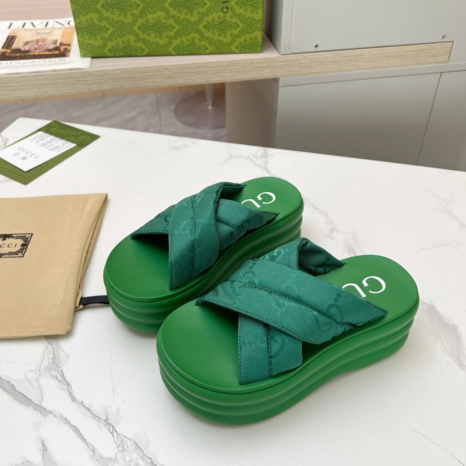 GC Floral Platform Wedge Sandal White Mix Flower lambskin