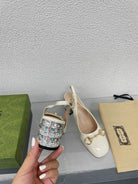 GG WOMEN'S HORSEBIT SLINGBACK IN WHITE CALFSKIN WITH RHINSTONES