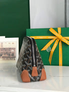 VENDÔME COSMETIC POUCH 17 IN BLACK GOYARDINE CANVAS AND TAN CALFSKIN TRIM