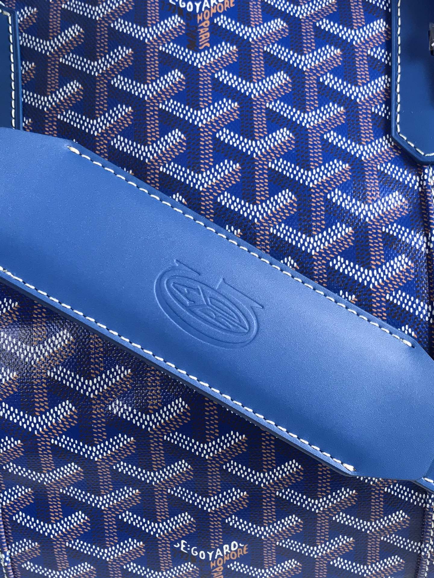 BOSTON 50 BAG IN SAPPHIRE BLUE GOYARDINE CANVAS AND CALFSKIN TRIM