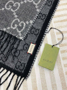 GG JACQUARD WOOL SCARF BLACK 398285