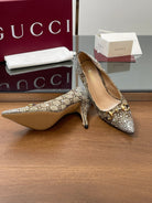 GG Horsebit Pump 85 Beige Ebony Monogram Canvas Crystal-Embellished