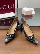 GG Horsebit Pump 85 Black Ebony Monogram Canvas Crystal-Embellished