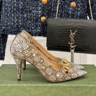 GG Pump 85 Beige Ebony Canvas Crystal-Embellished