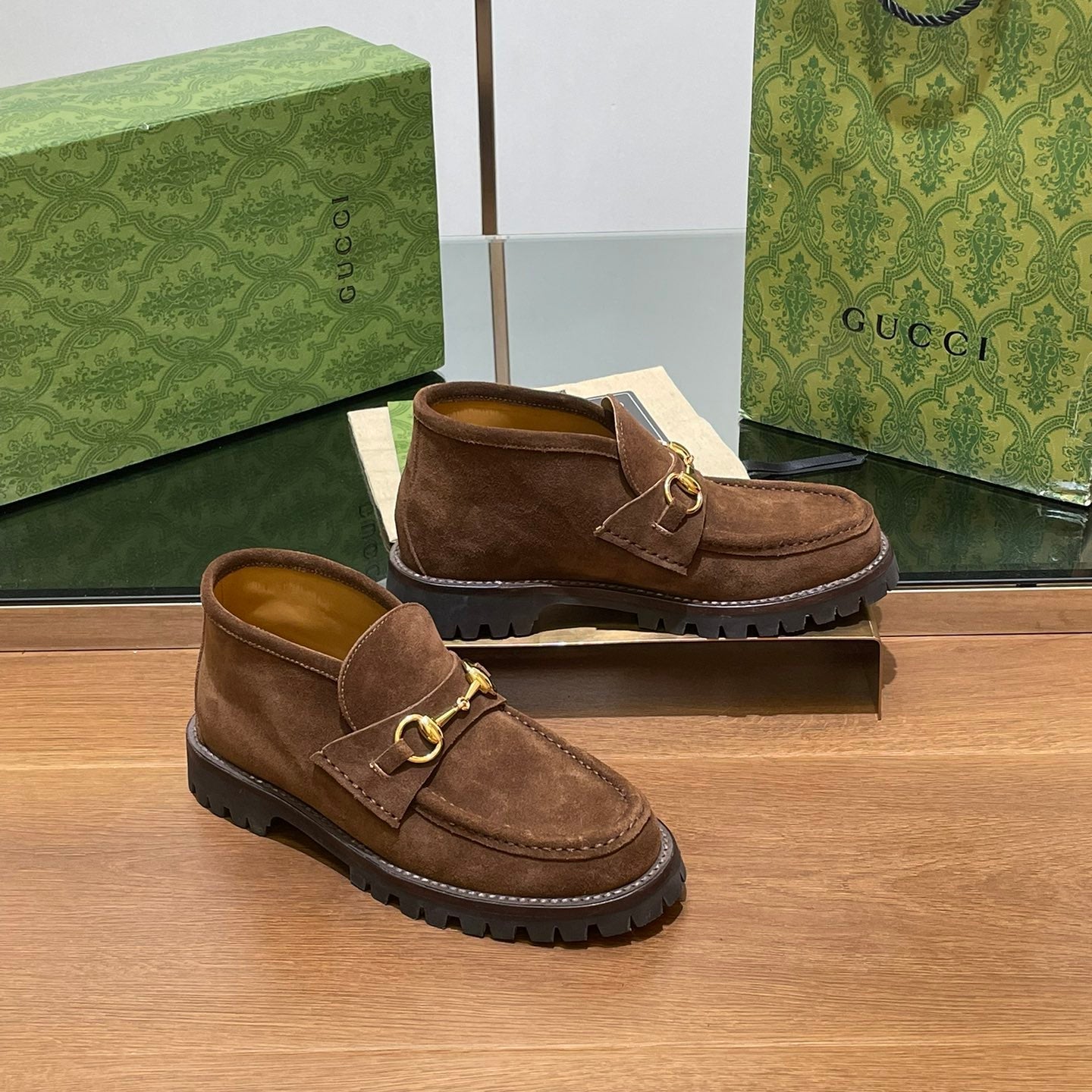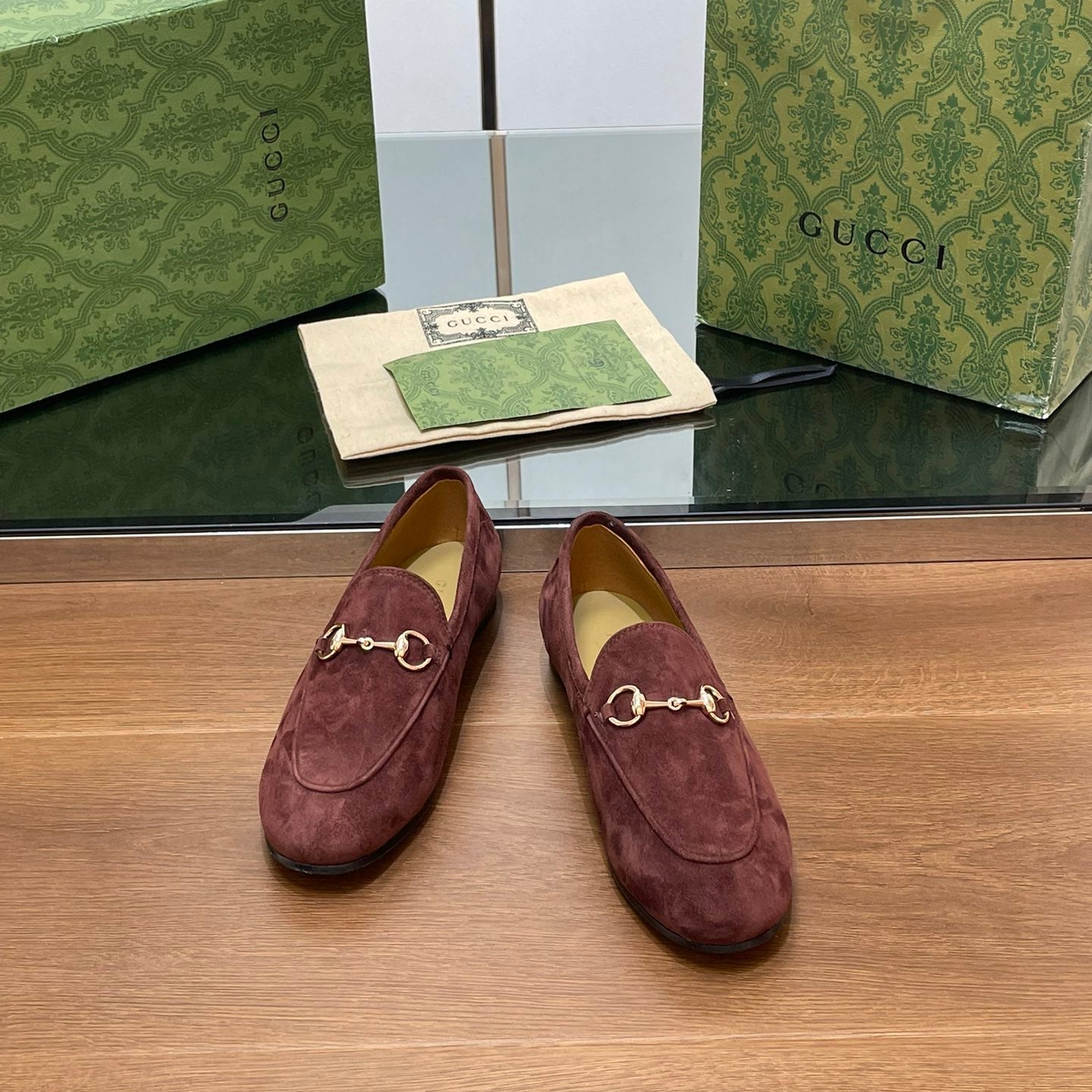 Gucci 25𝐬𝐬 horsebit ankle boots wine red suede 435375