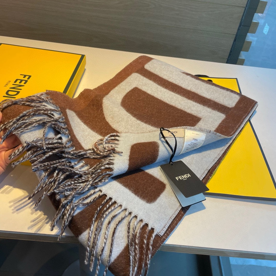 FF 185 CM SCARF IN CAMEL BROWN MIX GREY CASHMERE AND WOOL