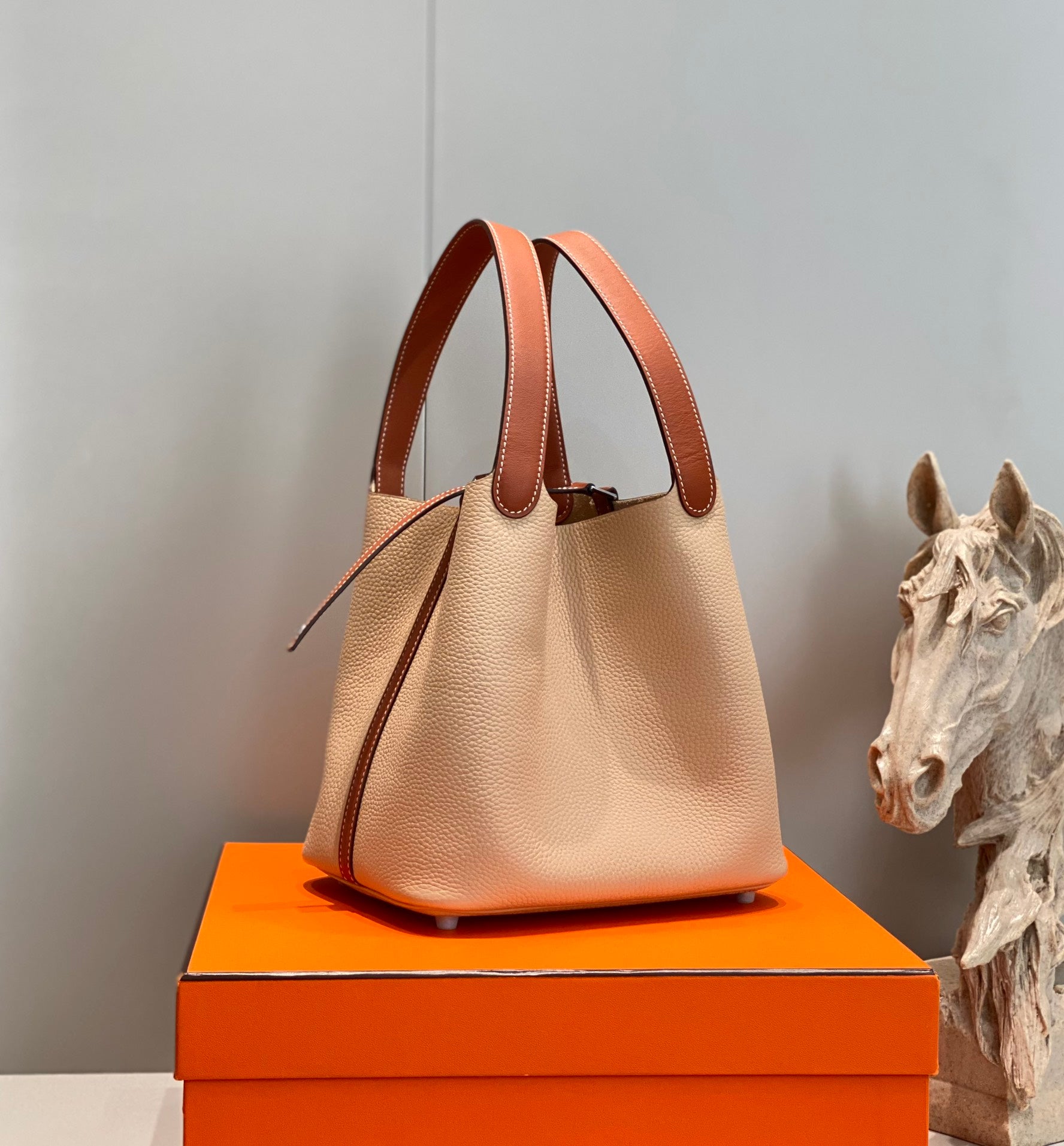 HM PICOTIN LOCK 22 BEIGE AND BROWN TOGO LEATHER