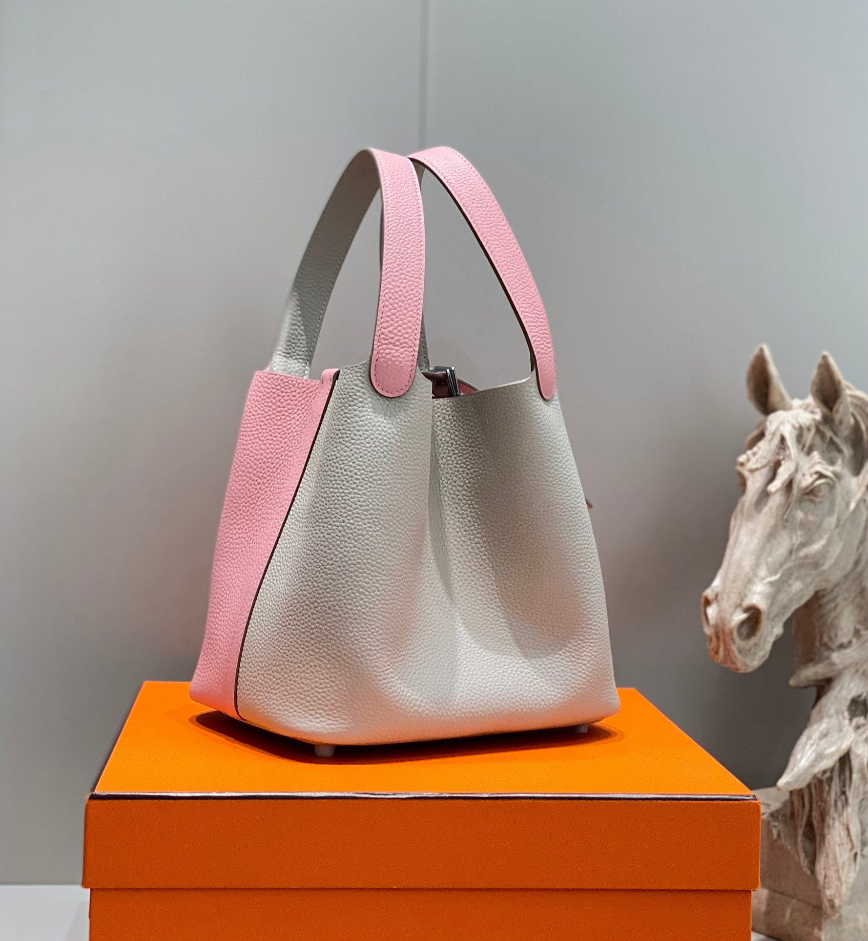 HM PICOTIN LOCK 22 CREAM AND PINK TOGO LEATHER
