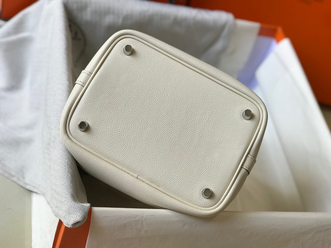 HM PICOTIN LOCK 22 WHITE EPSOM WITH BRAID STRAP
