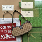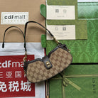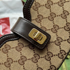 MOON SIDE SHOULDER BAG 24 IN BEIGE CANVAS AND DARK BROWN LEATHER TRIM