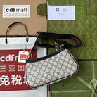 OPHIDIA SMALL SHOULDER BAG 25 IN BEIGE CANVAS AND BLACK LAMBSKIN GOLD HARDWARE