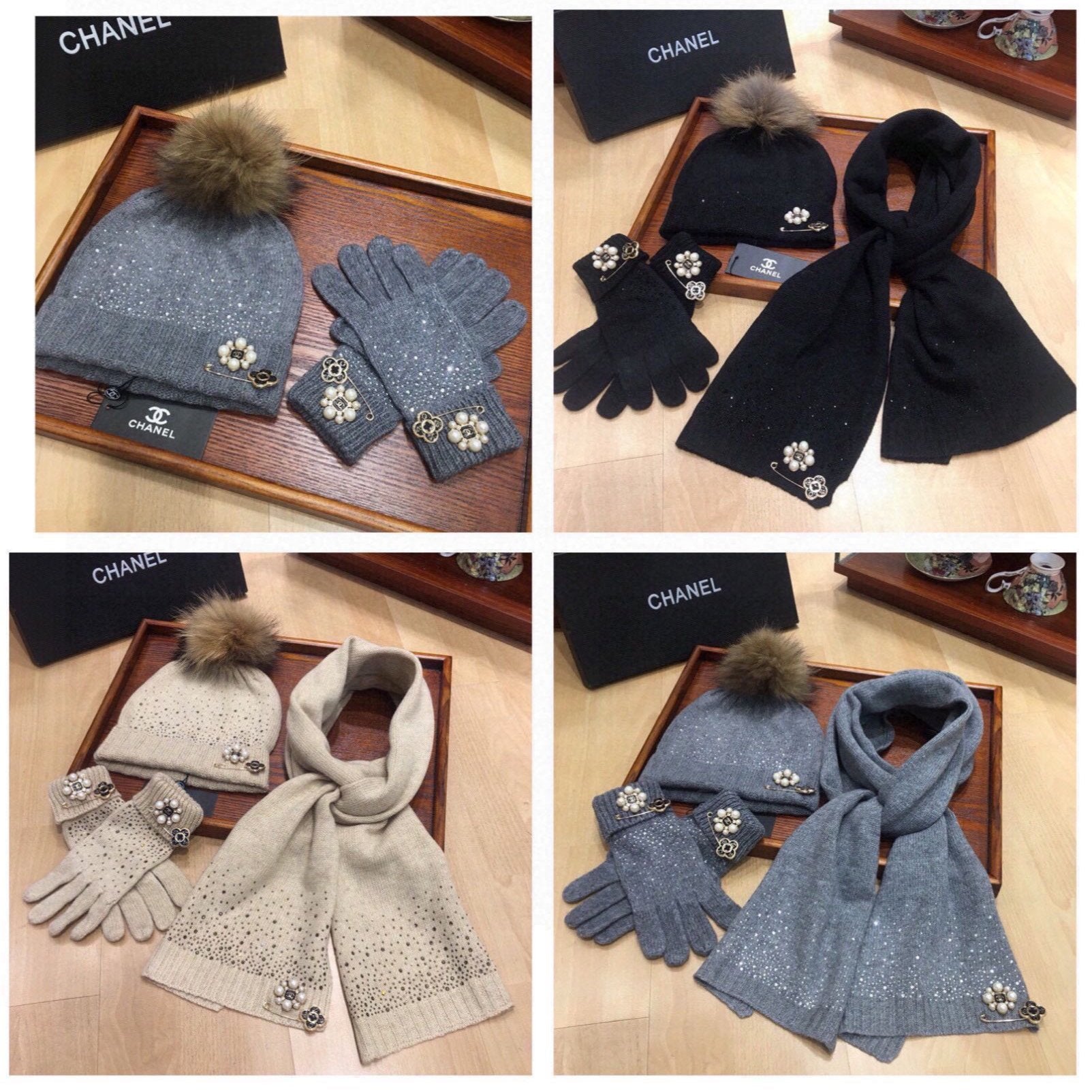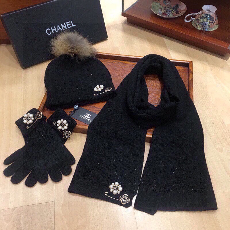 • Cashmere Knit Scarf, Hat, and Gloves Set