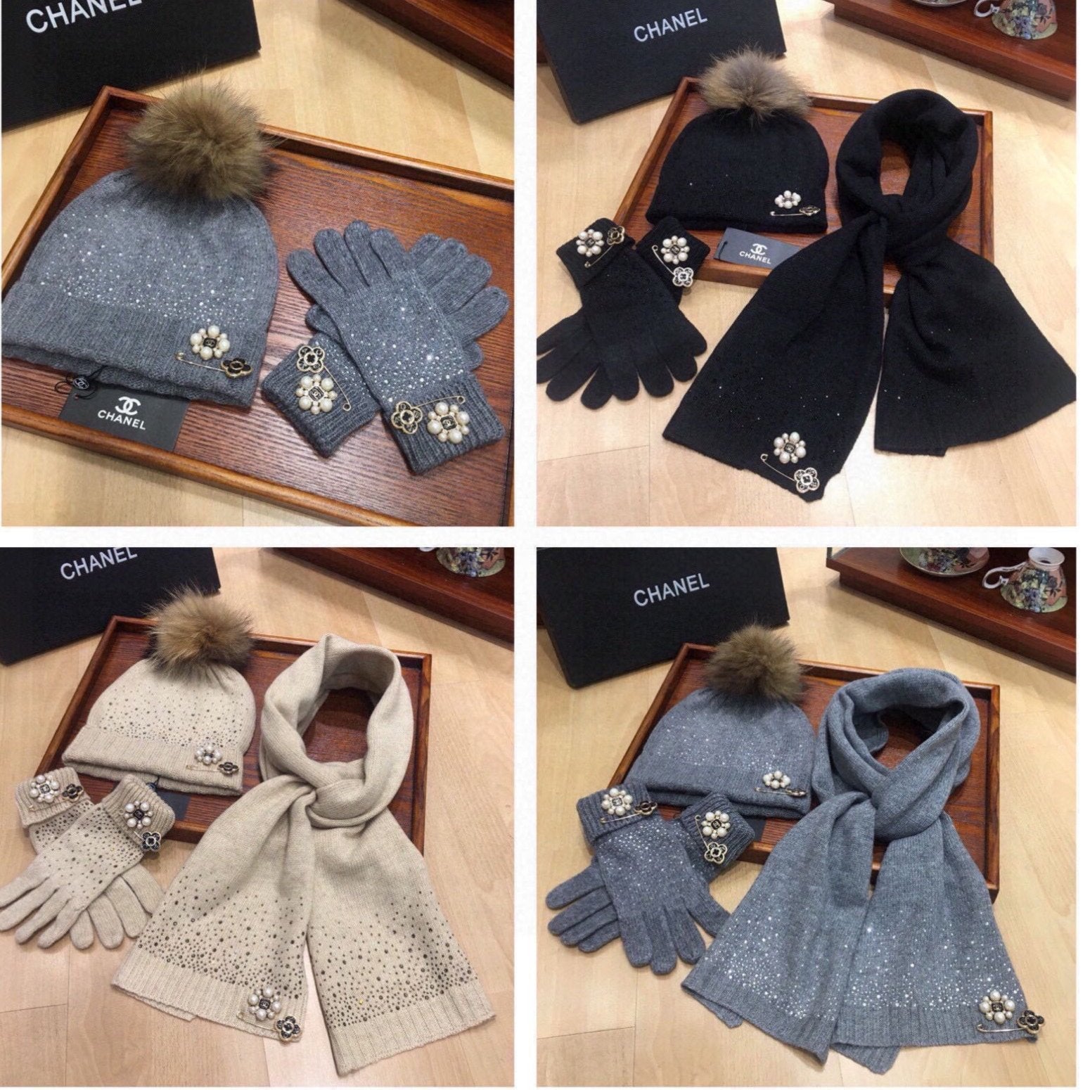 • Cashmere Knit Scarf, Hat, and Gloves Set