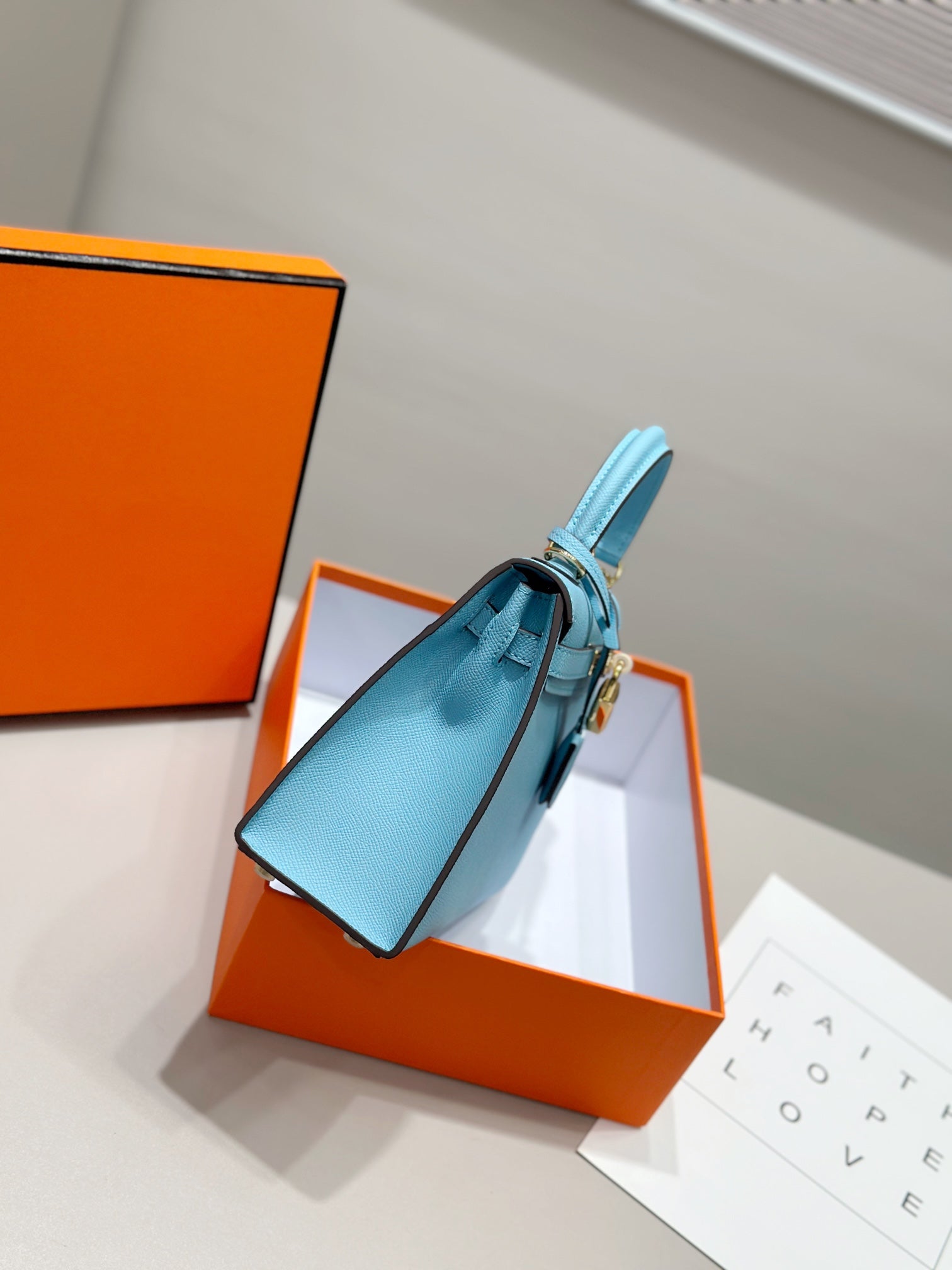 HM Kelly 25cm Tiffany Blue Epsom Leather Gold Hardware