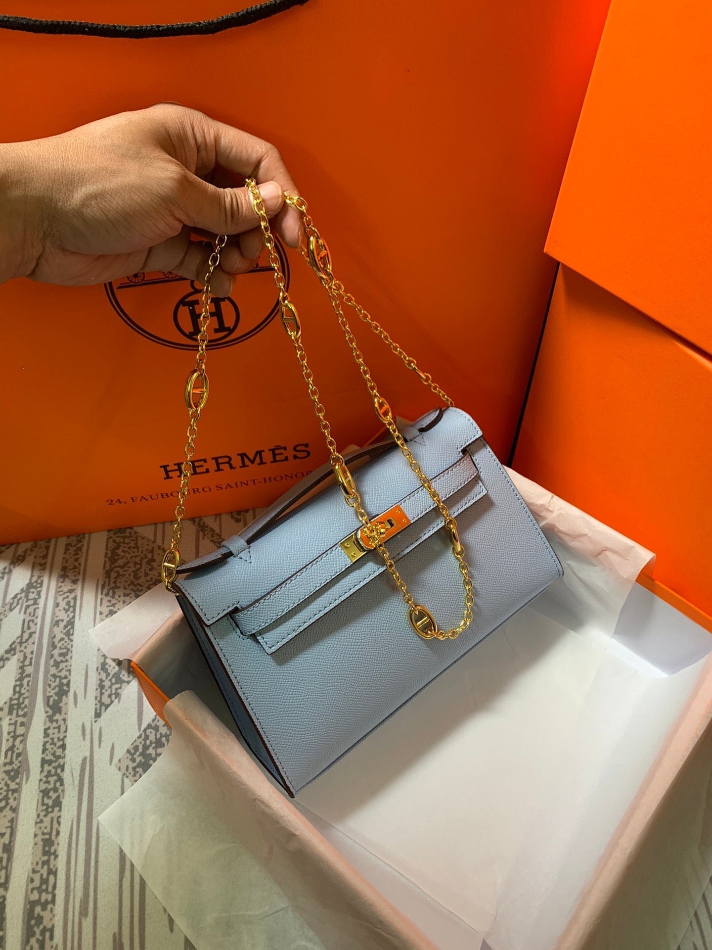 HM KELLY MINI POCHETTE 22 SAPPHIRE EPSOM