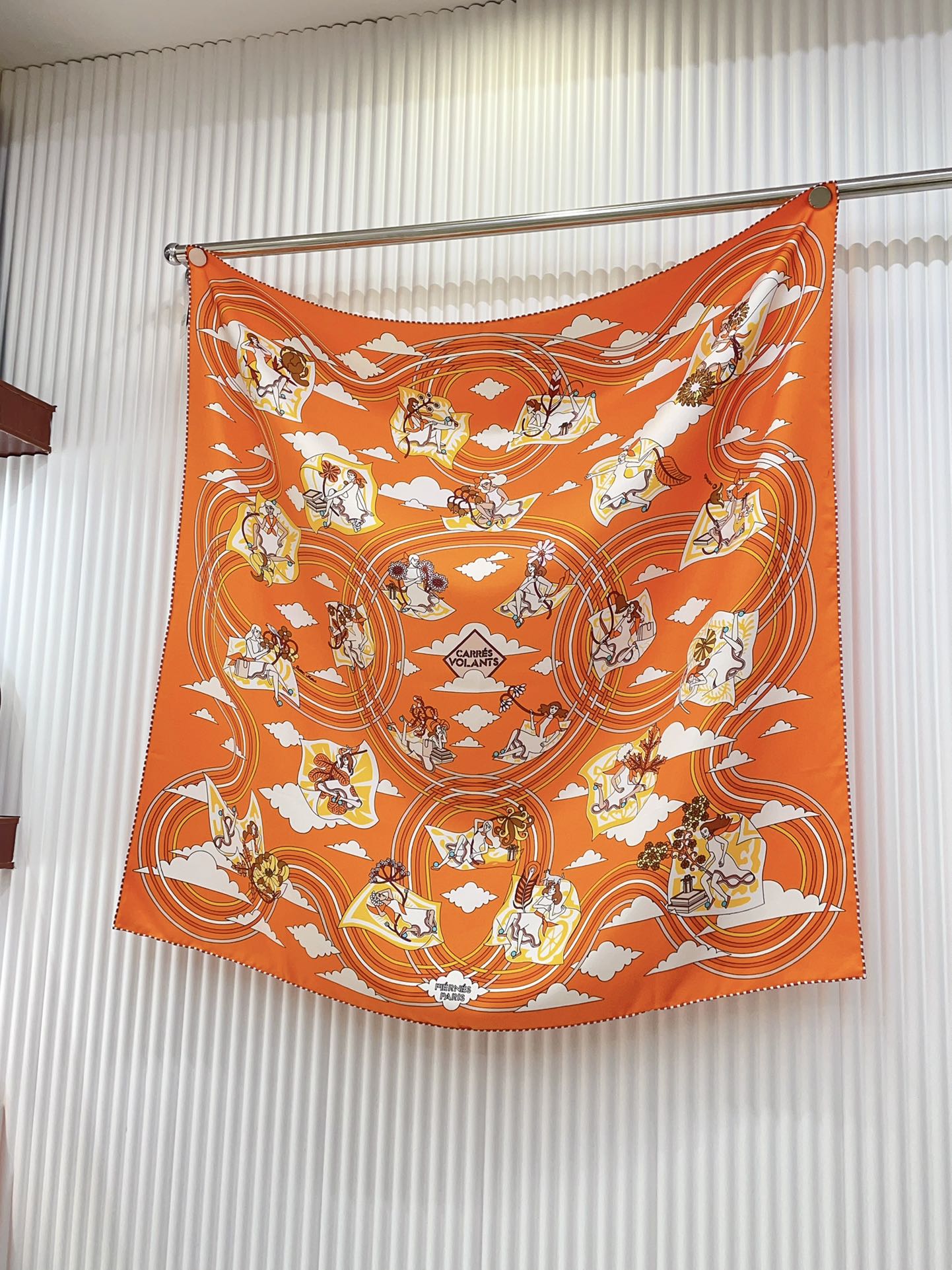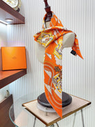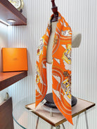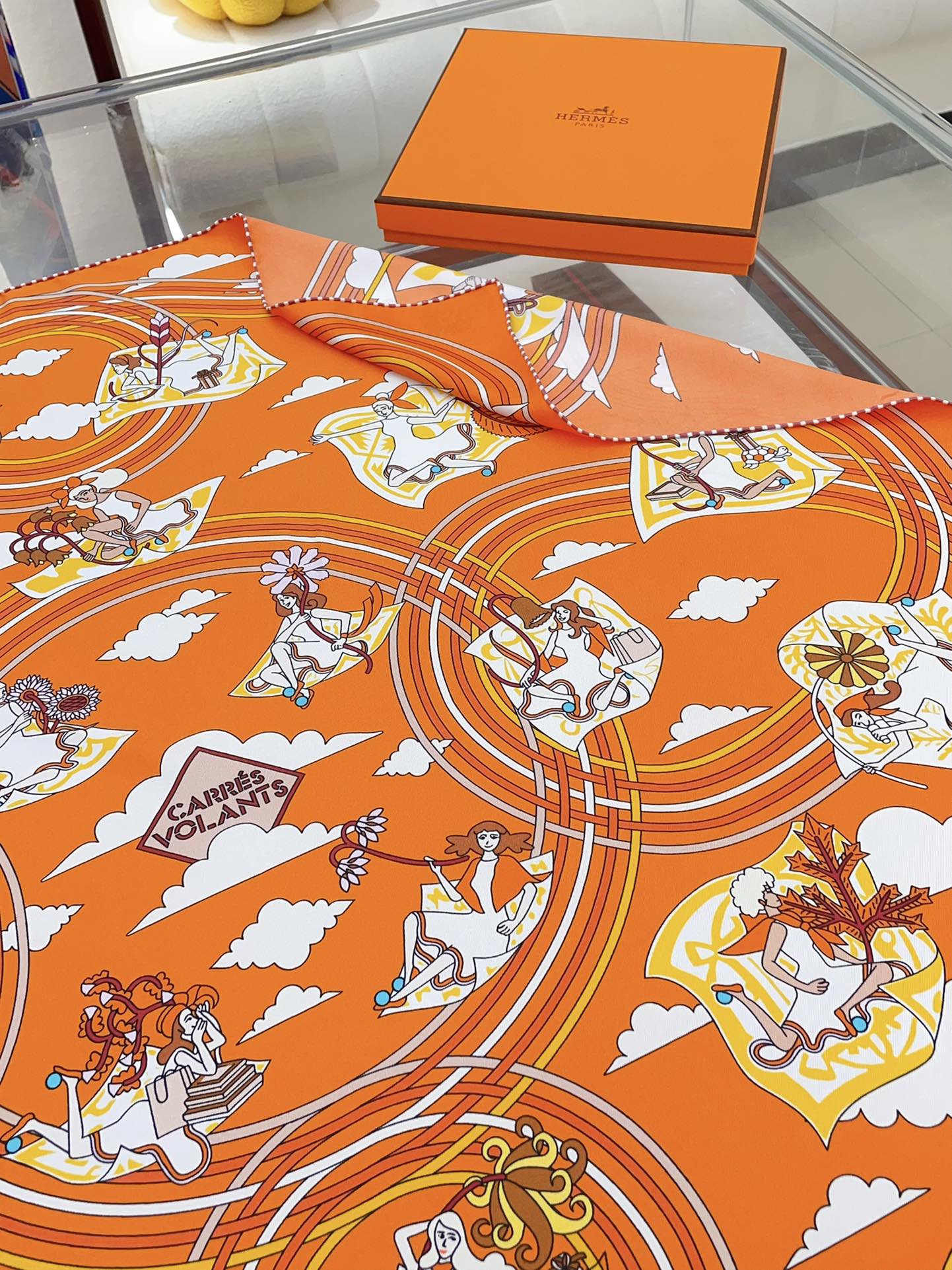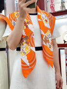 Carres Volants Scarf 90 CM In Orange Colorful Silk Twill 244995