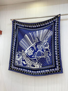 Cheval Punk Bandana Scarf 90 CM In Dark Blue Mix White Black Silk Twill 309213