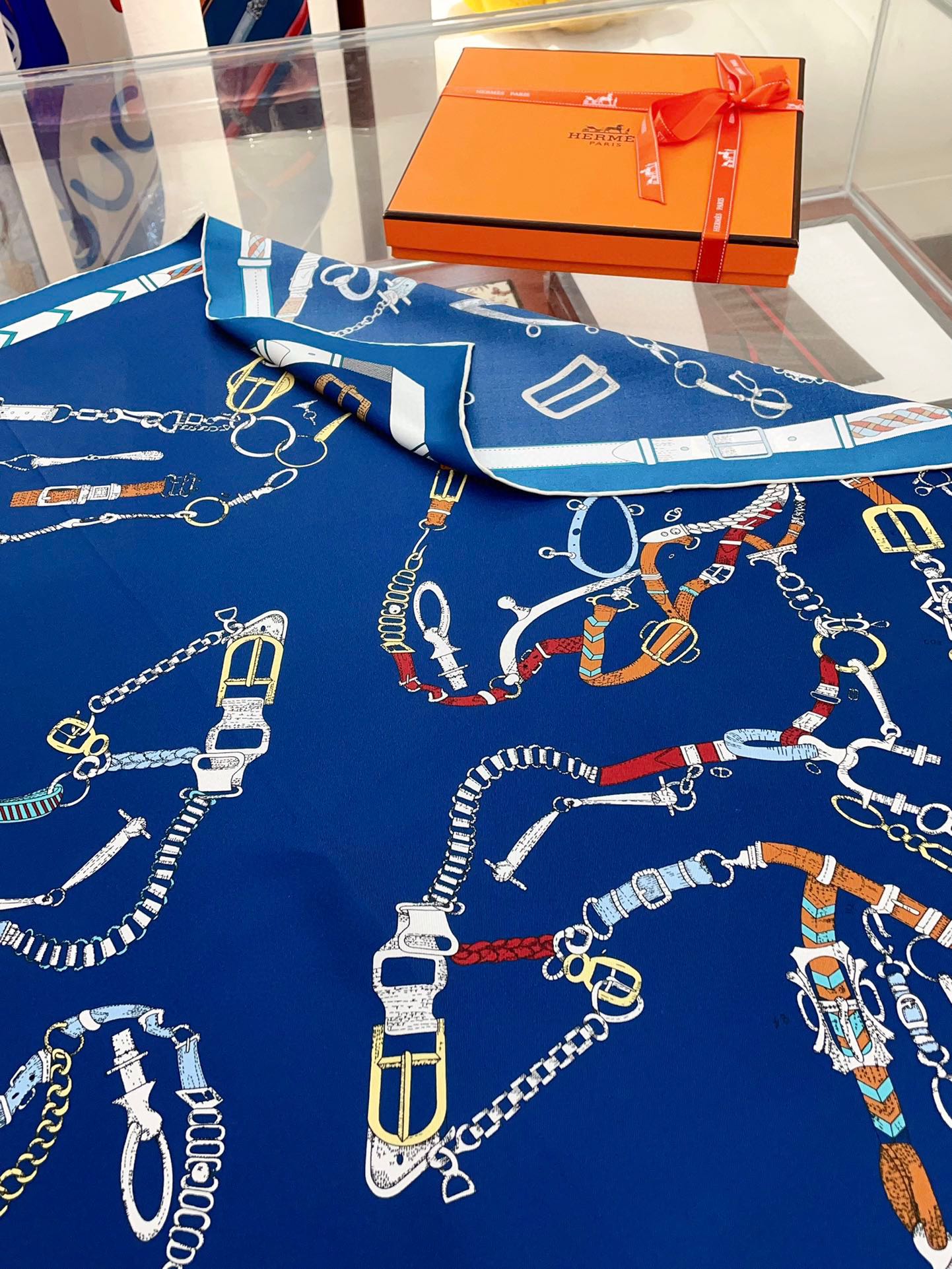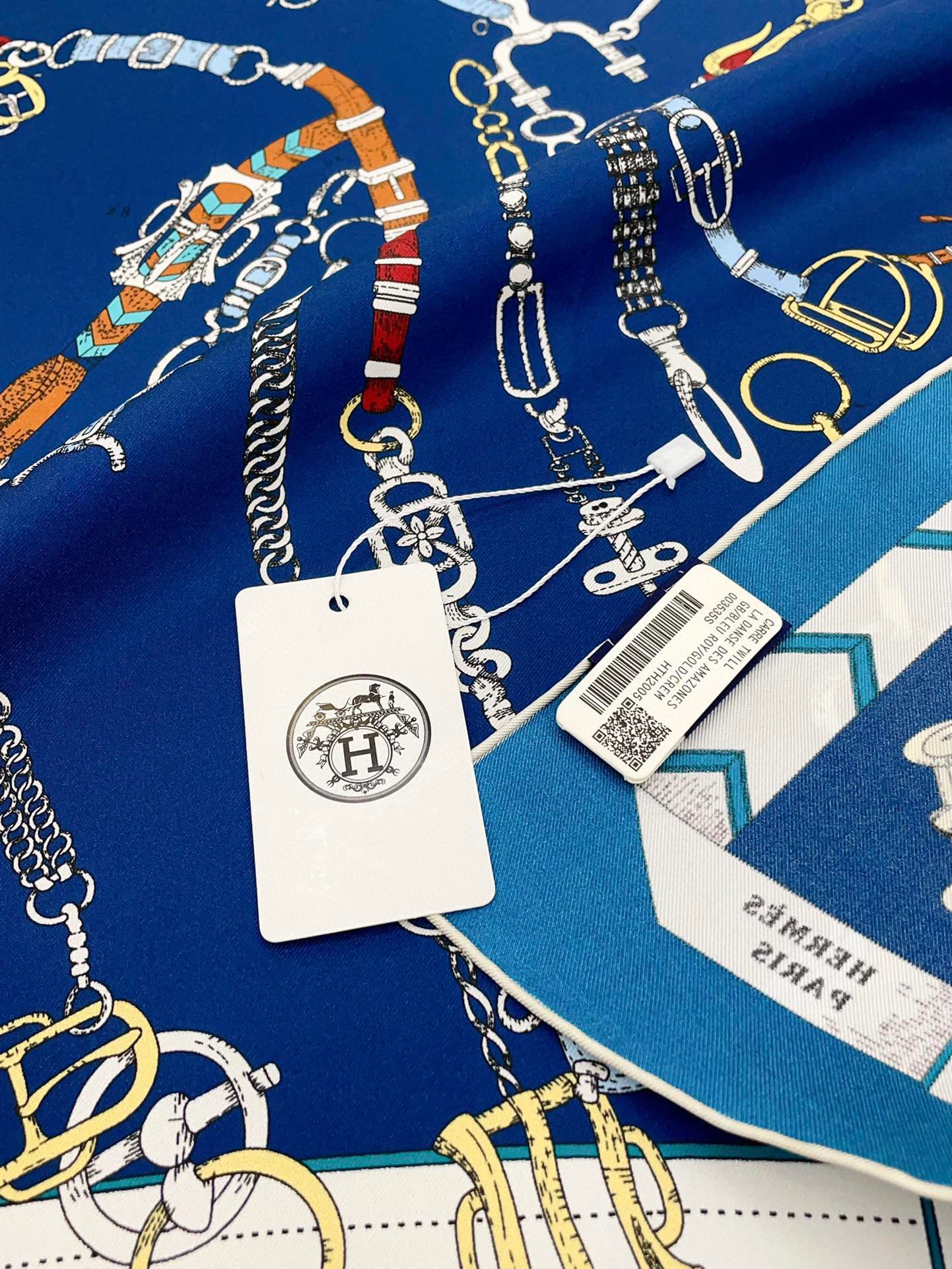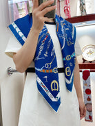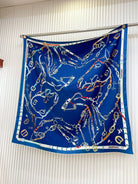 Chevaux Dechaines Shawl 90 CM In Dark Blue Colorful Silk Twill 201032