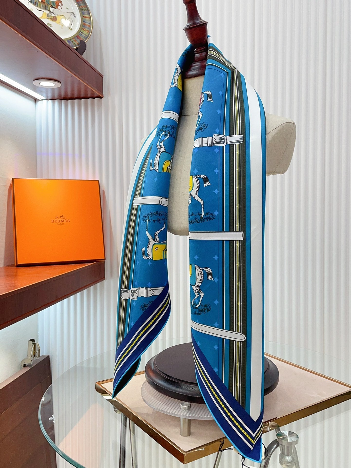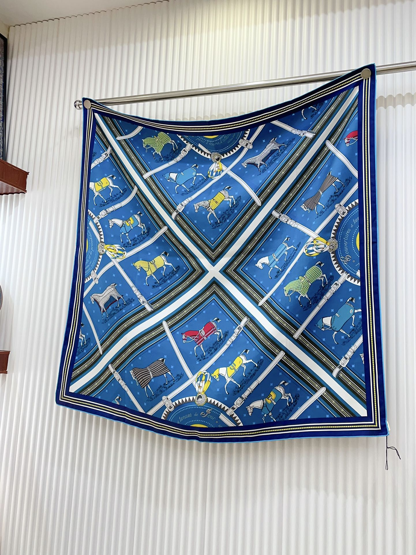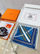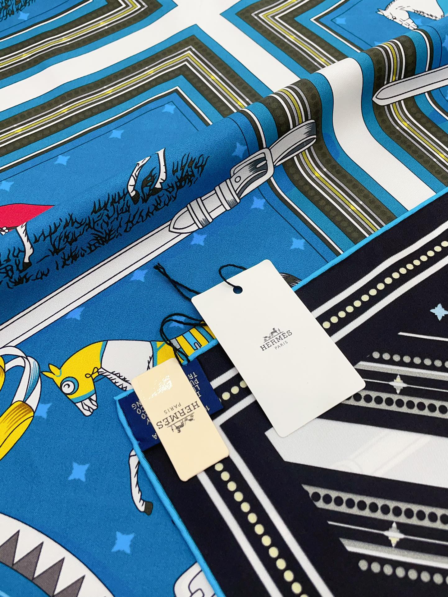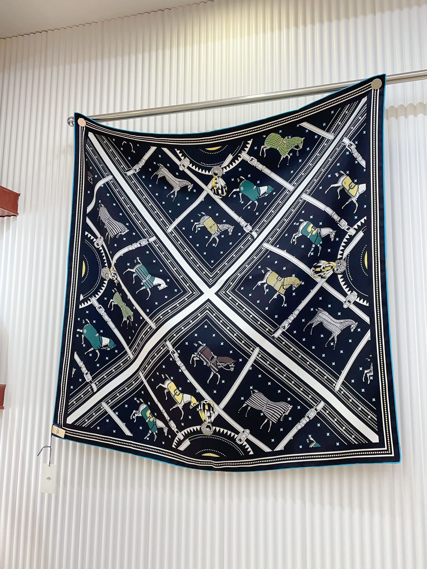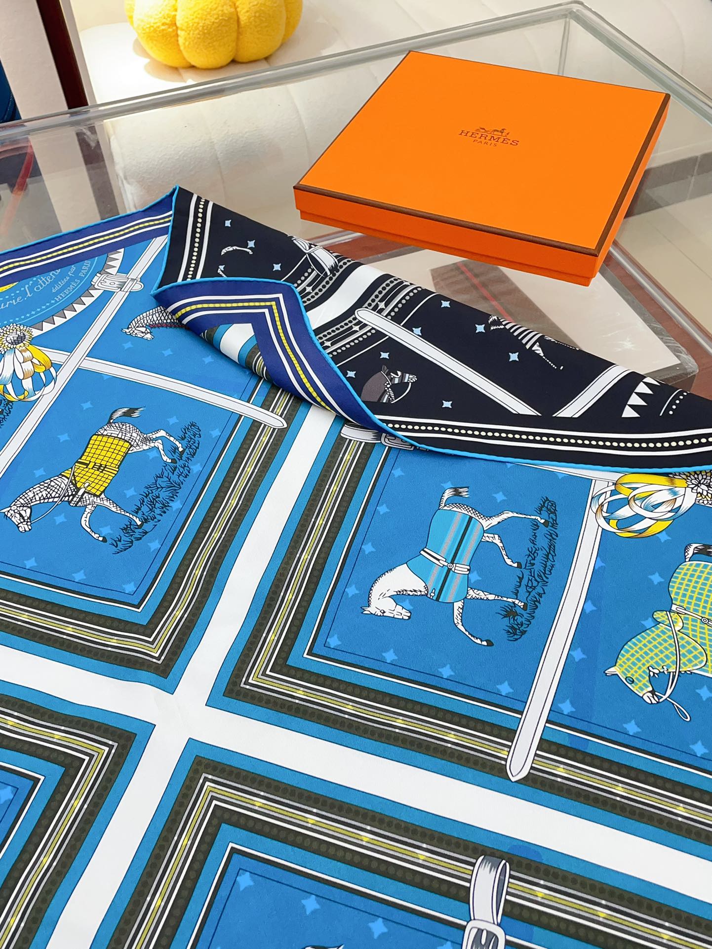 Couvertures Et Tenues De Jour Double Face Scarf 90 CM In Blue Mix Black Colorful Silk 190031