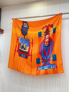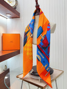 First & Chic Scarf 90 CM In Orange Colorful Silk Twill 202492