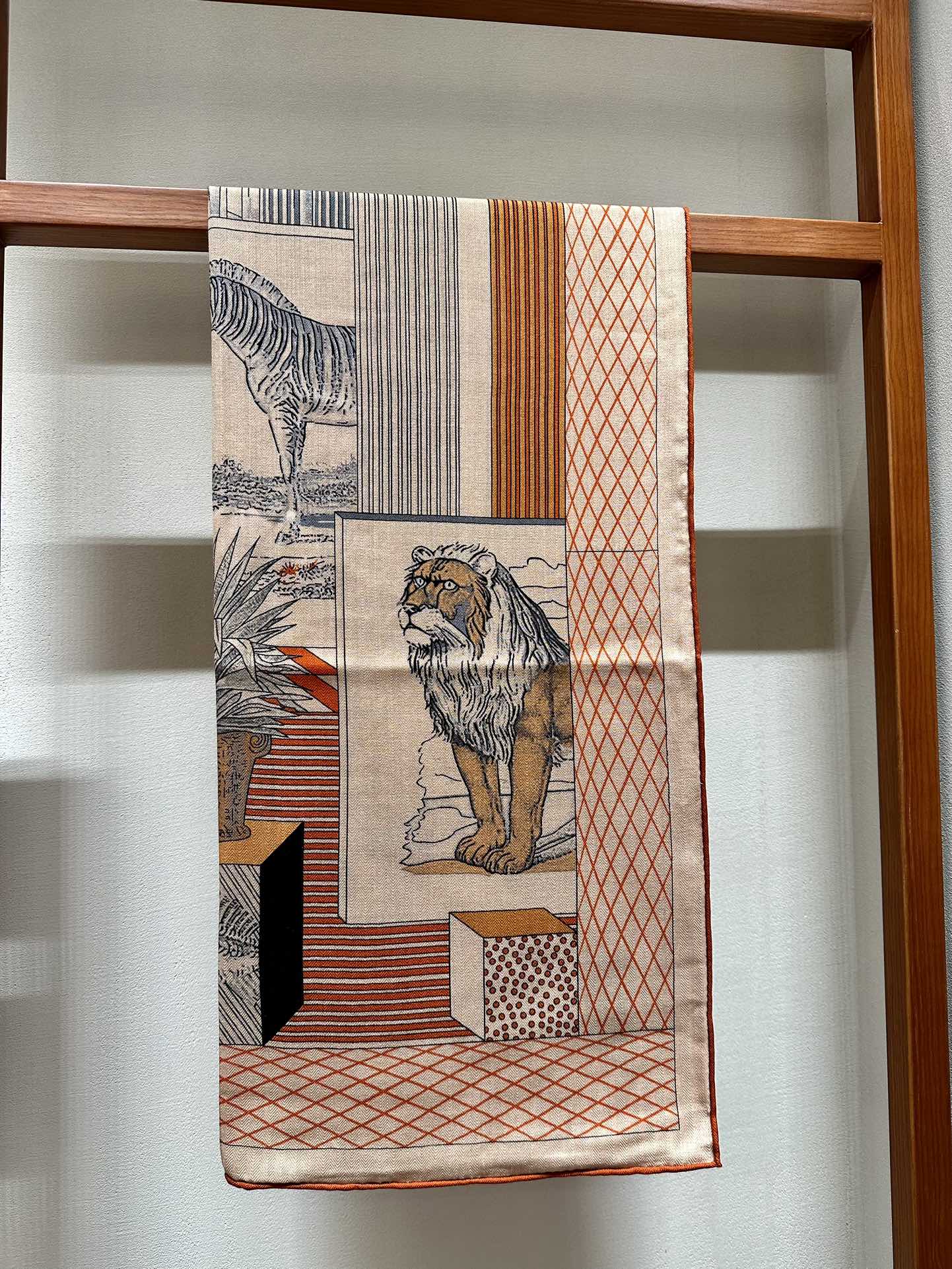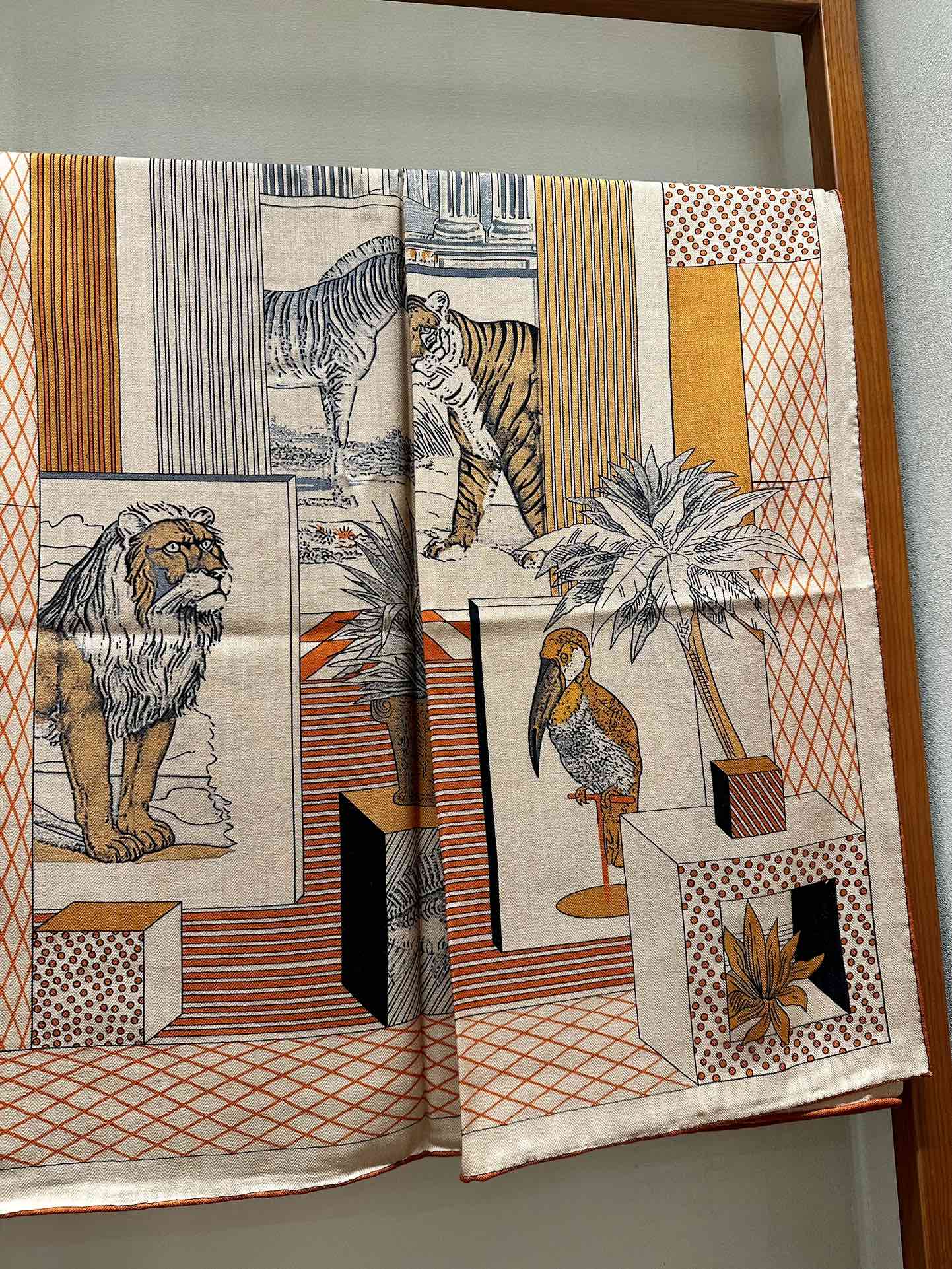 Grand Theatre Nouveau Scarf 140 CM In Orange Colorful Silk 385352