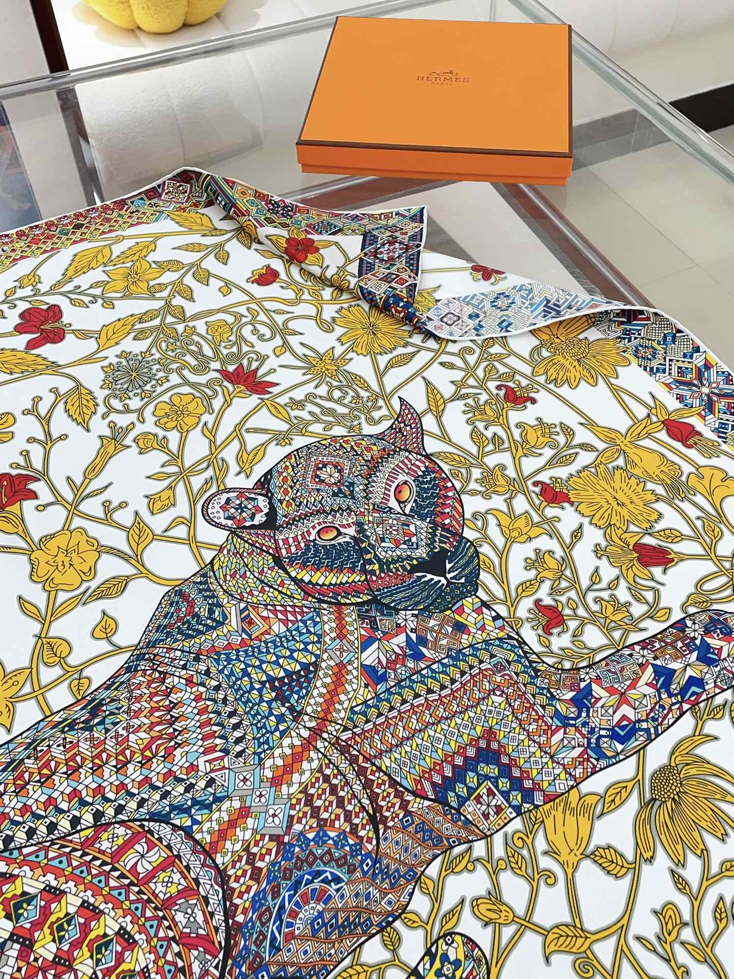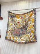 Le Jaguar Et Le Colibri Shawl 90 CM In Yellow Colorful Silk Twill 274206