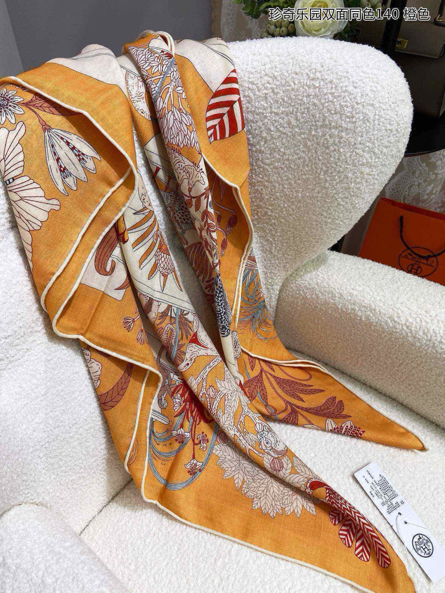 Precious Paradise Scarf 140 CM Yellow Orange Colorful Cashmere And Silk