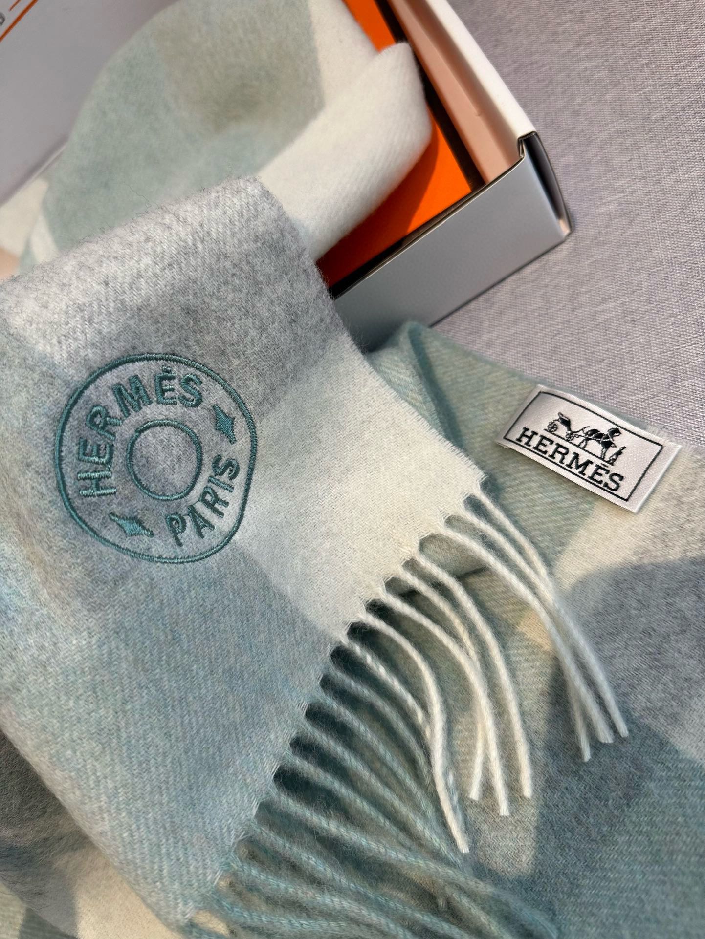 Scarf 180 CM In Light Turquoise Mix White Light Grey Cashmere 381229