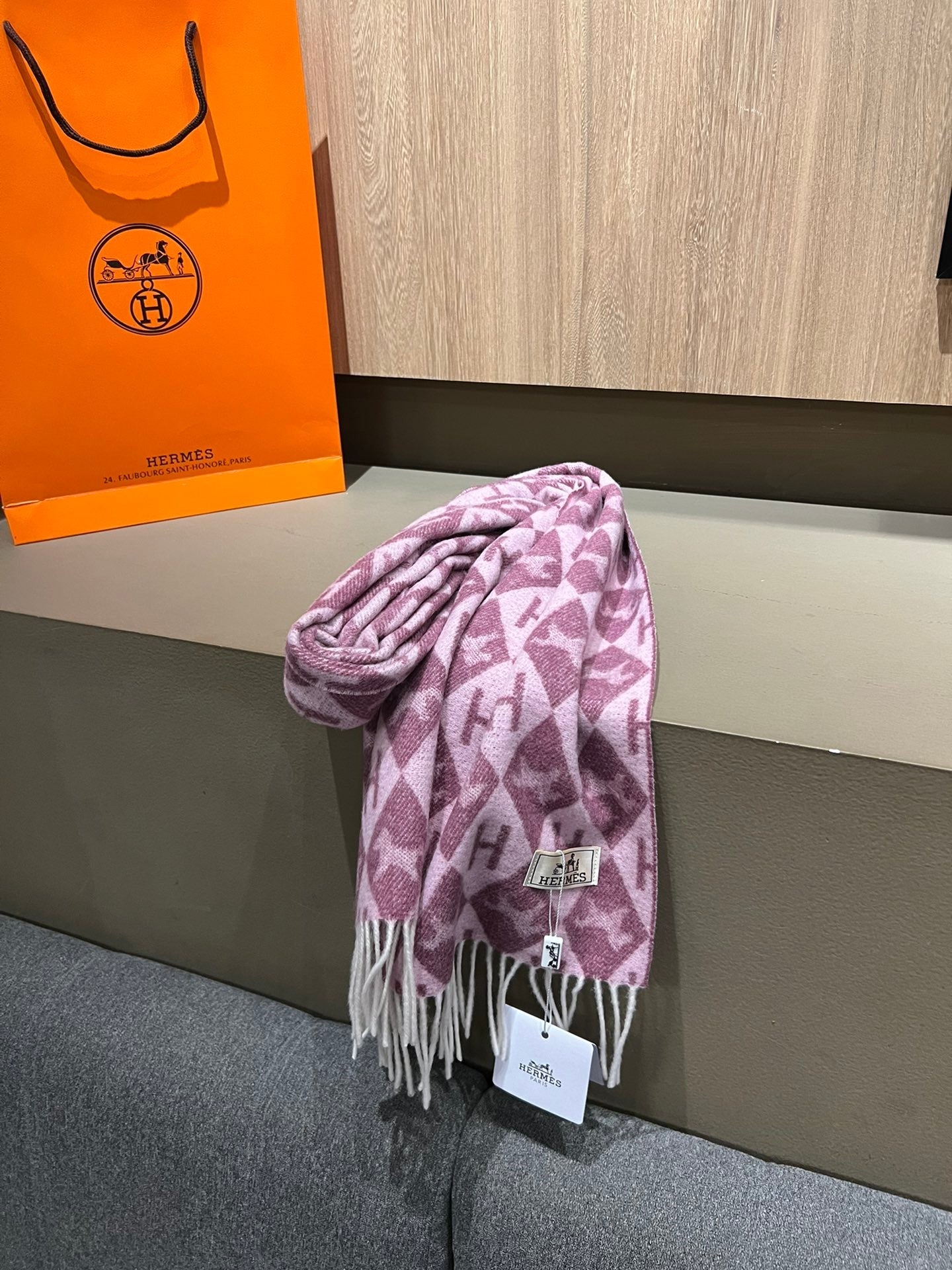 Scarf Cashmere 180 CM In Purple Pink Fine Wool 290423