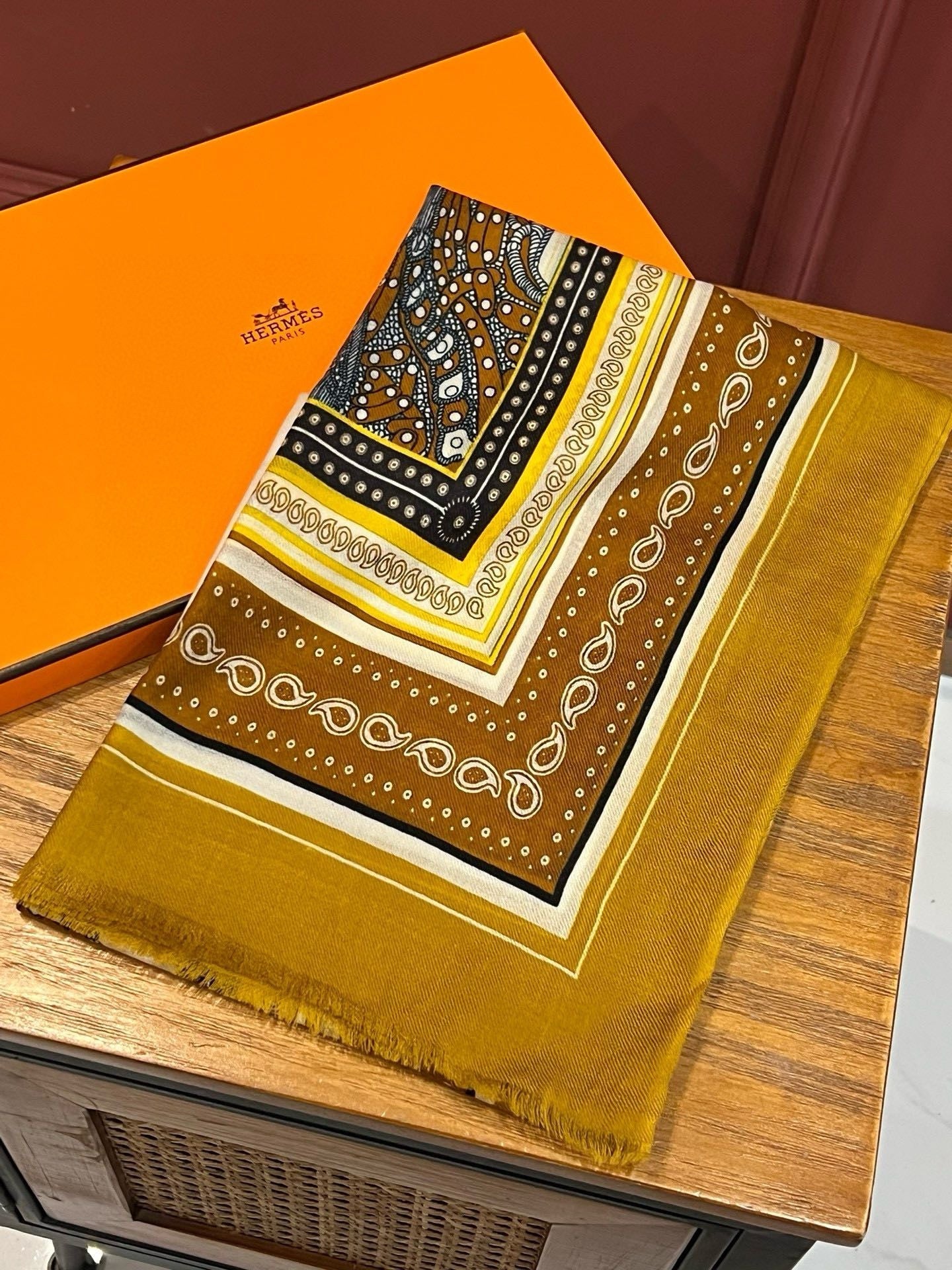 Selle De Dignitaire Bandana Shawl 200 CM In Yellow Brown Colorful Cashmere 265335