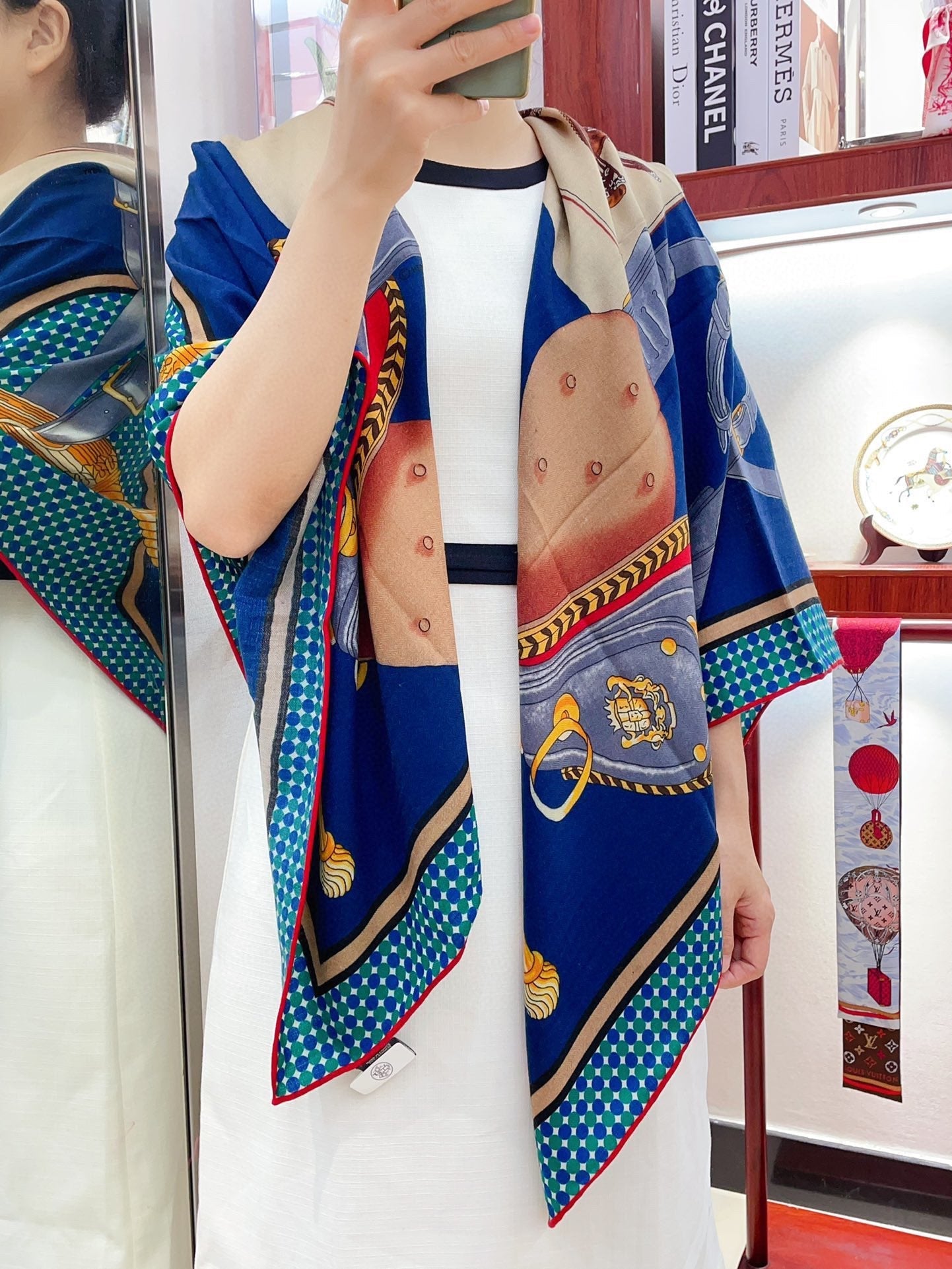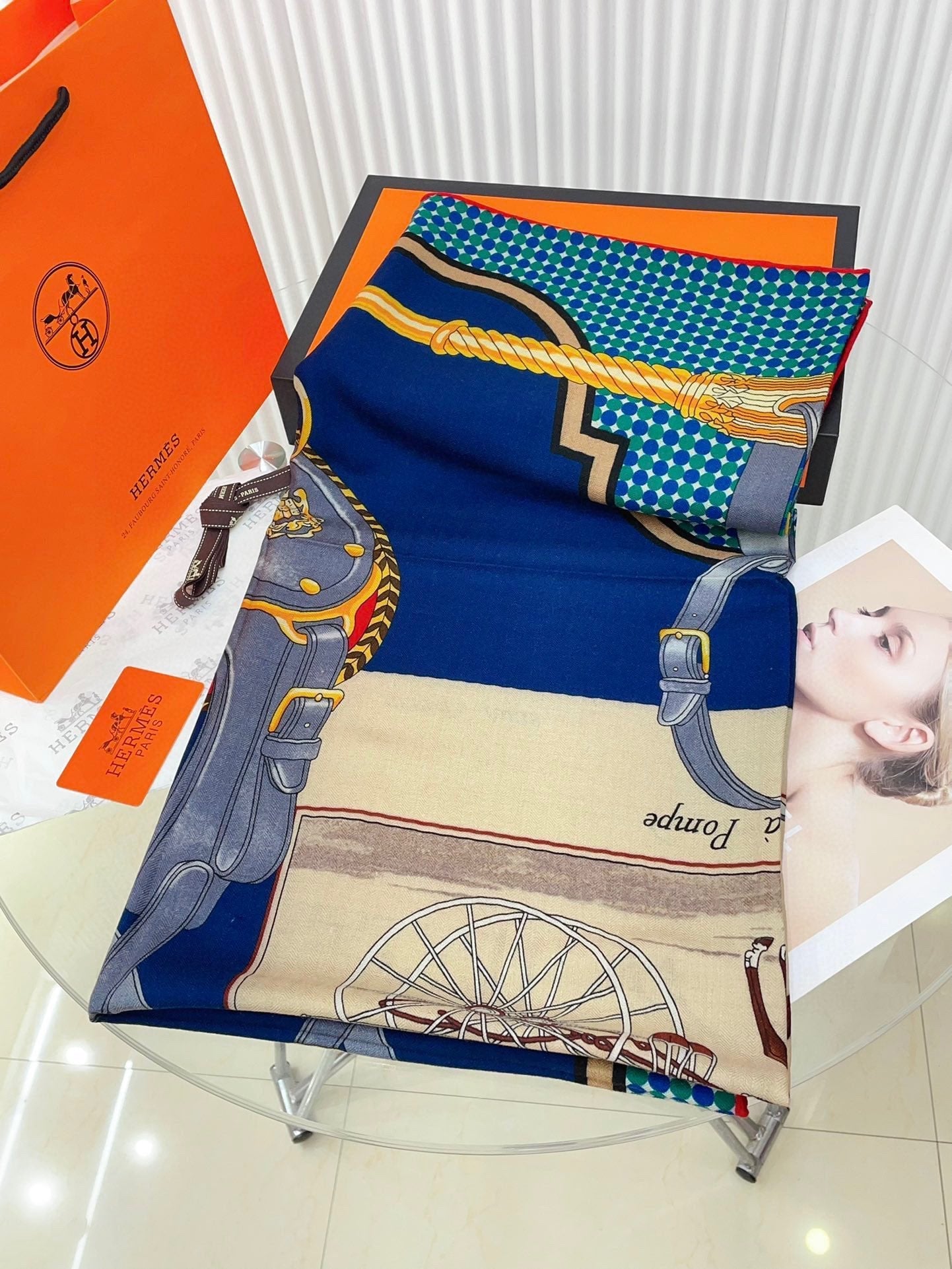 Silk Carrick a Pompe Scarf 140 CM In Dark Blue Colorful Cashmere And Silk 381156