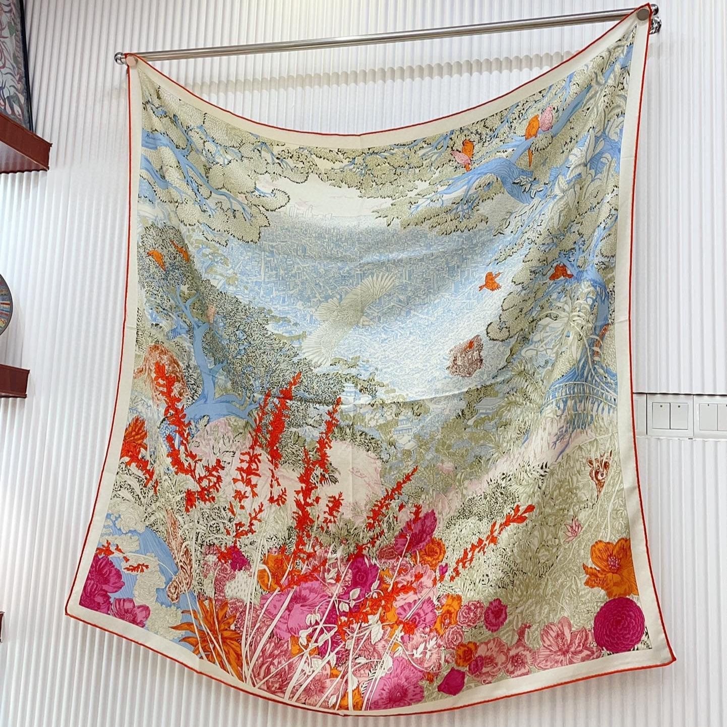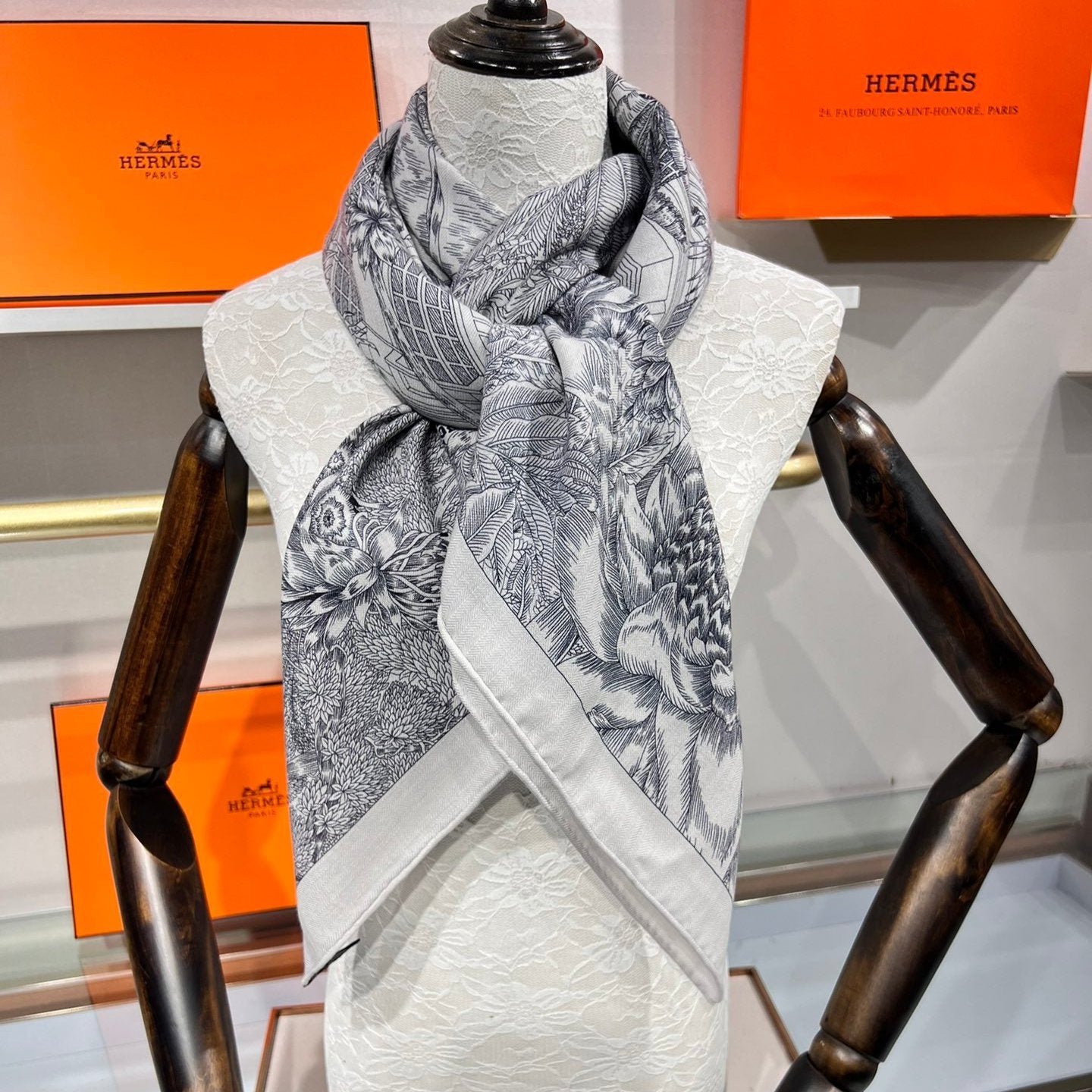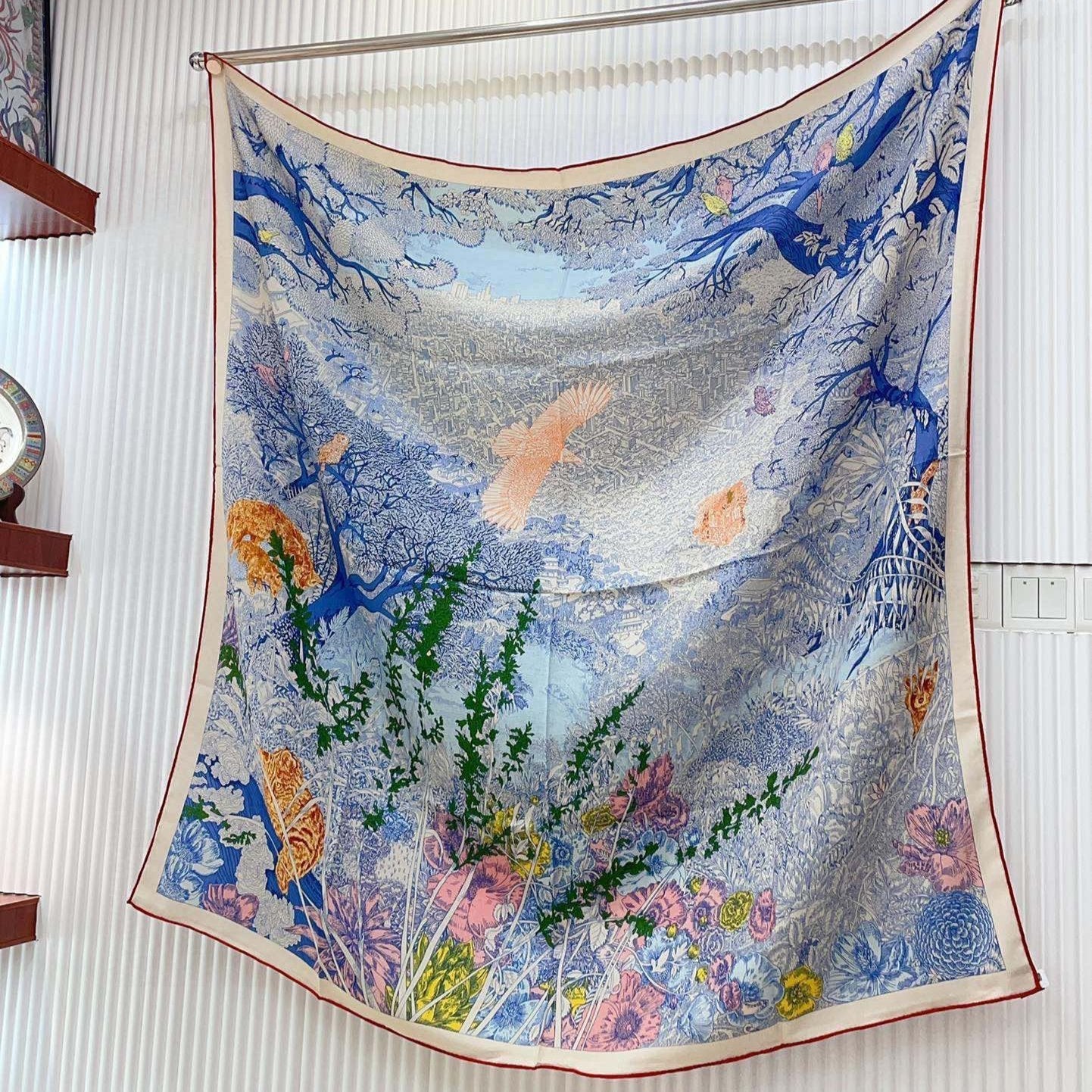 Square Scarf 140CM In Grey White Colorful Cashmere And Silk