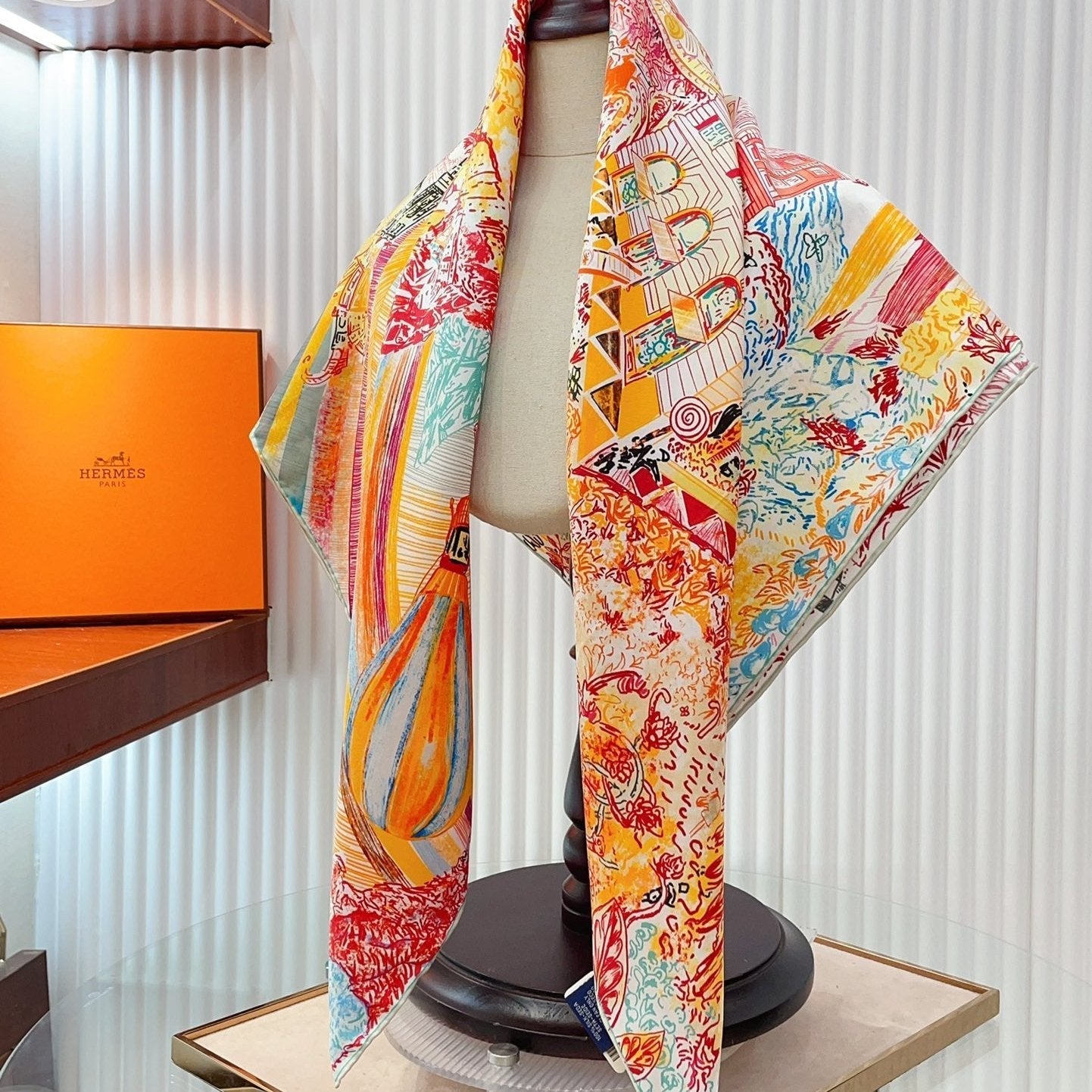 Palonniers scarf 90 CM In Orange Colorful Silk Twill 321910