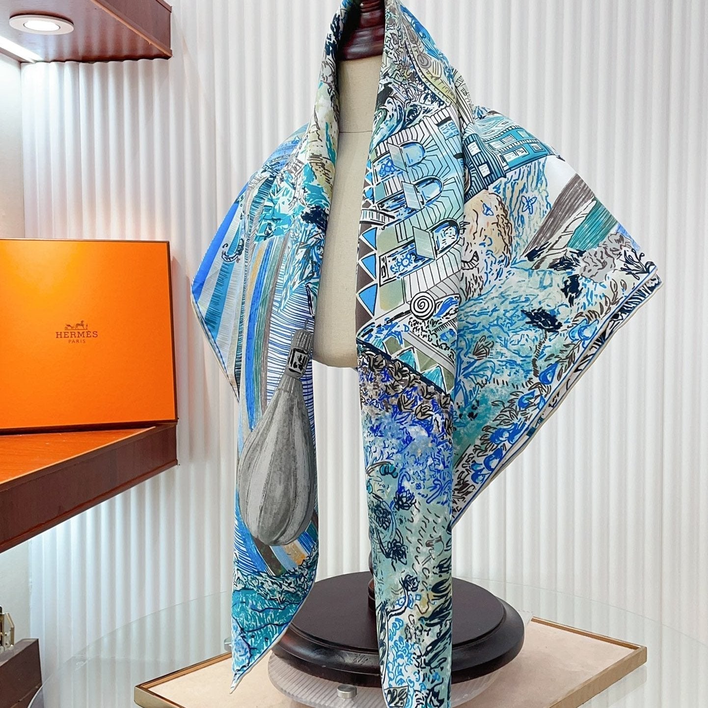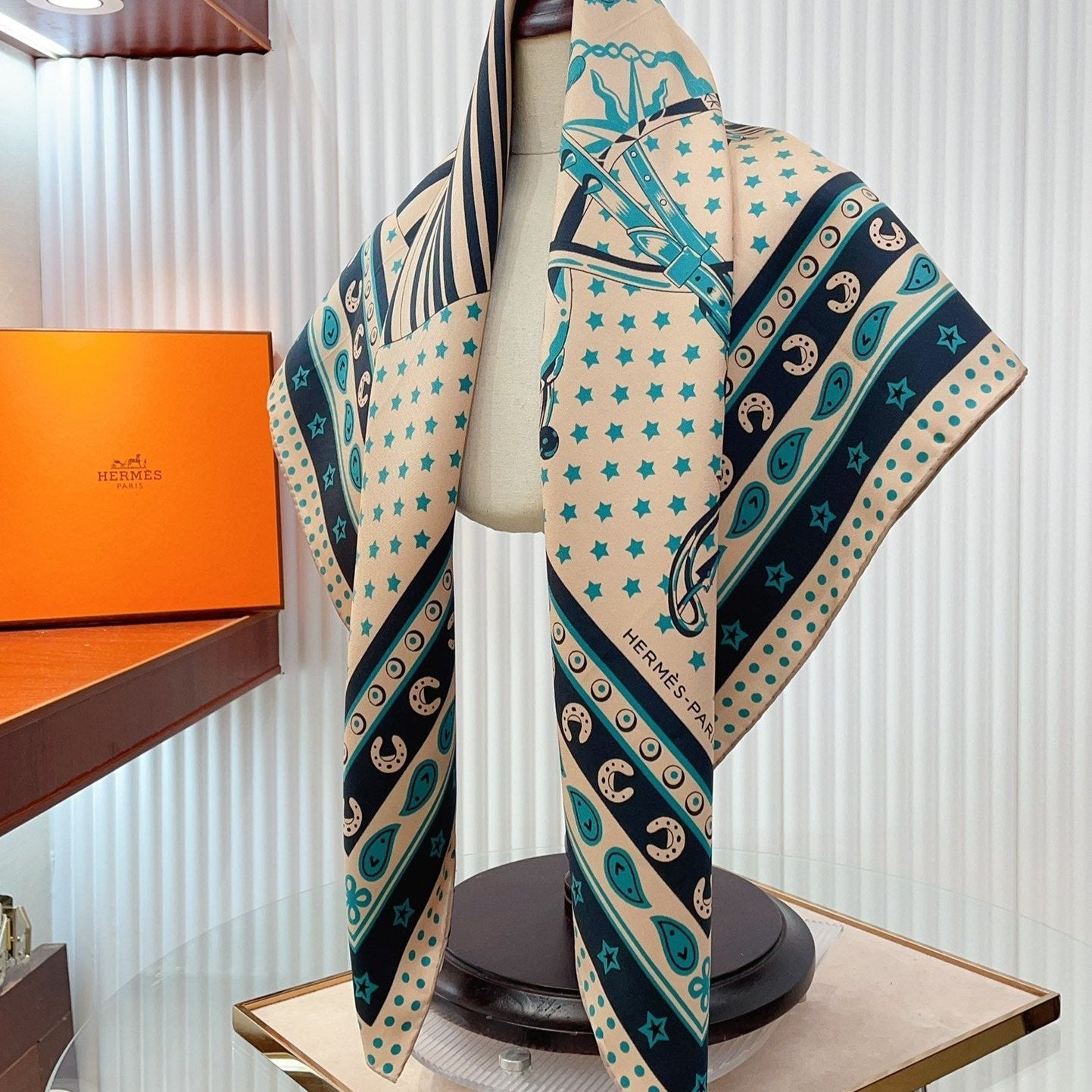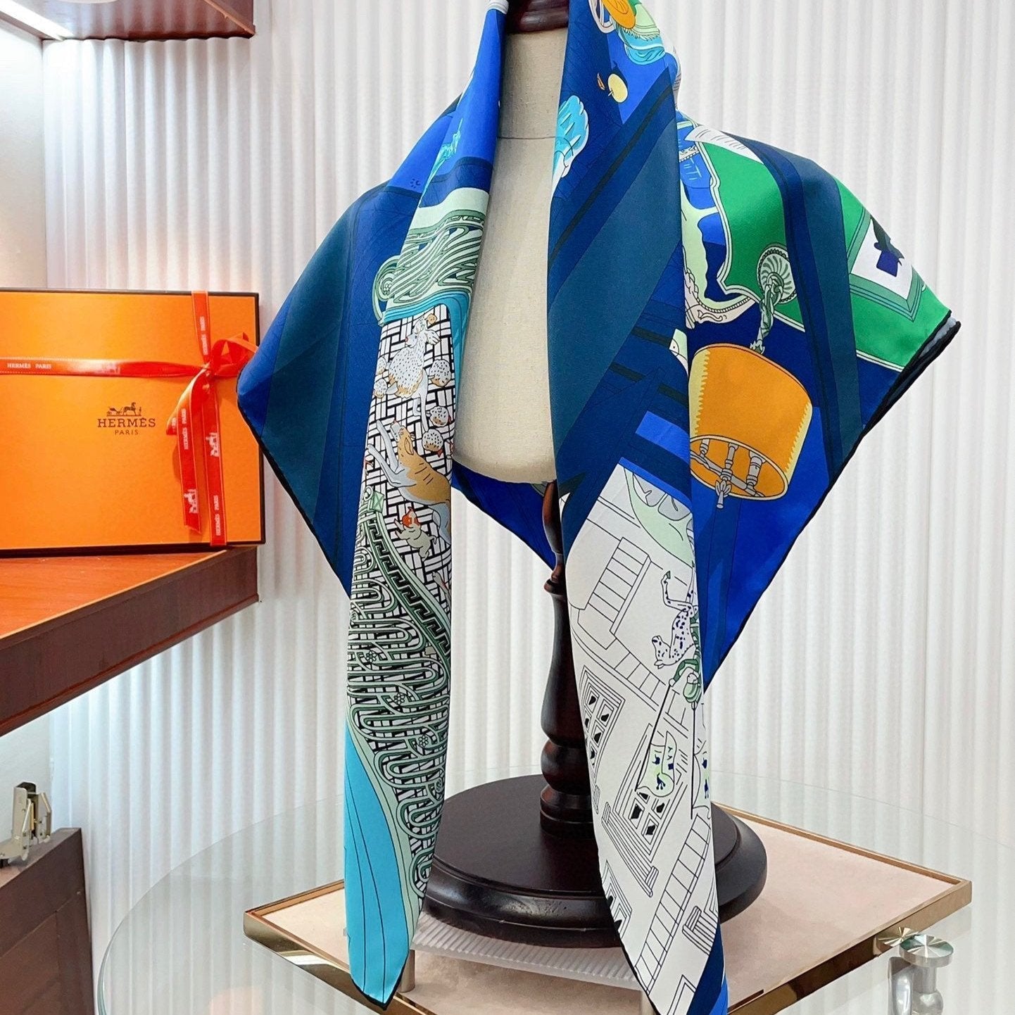 Parade Scarf 90 CM In Blue Colorful Silk Twill 310307