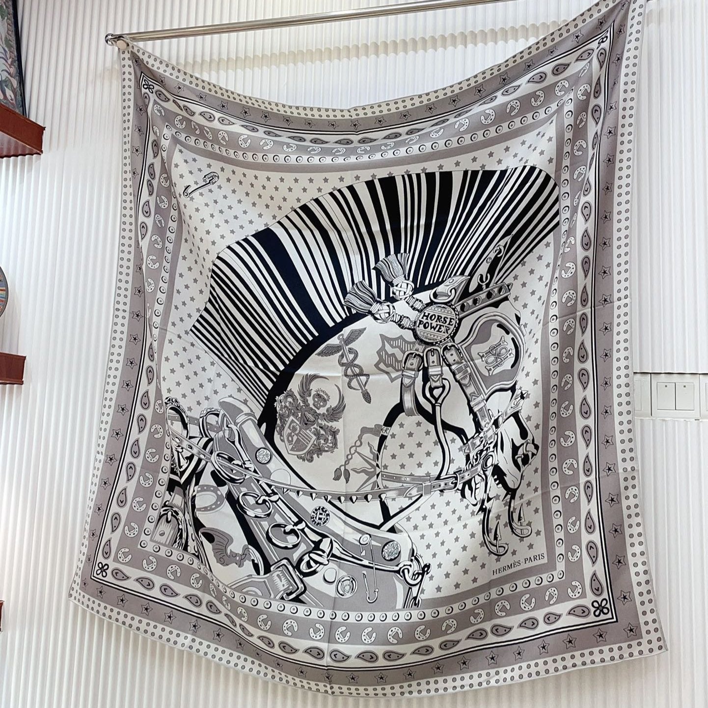 Pique Sellier Shawl 90 CM In Grey White Colorful Silk Twill 312869