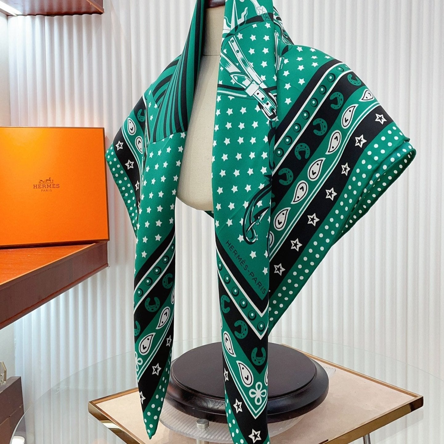 Cheval Punk Bandana Scarf 90 CM In Deep Green Mix White Black Silk Twill 309212