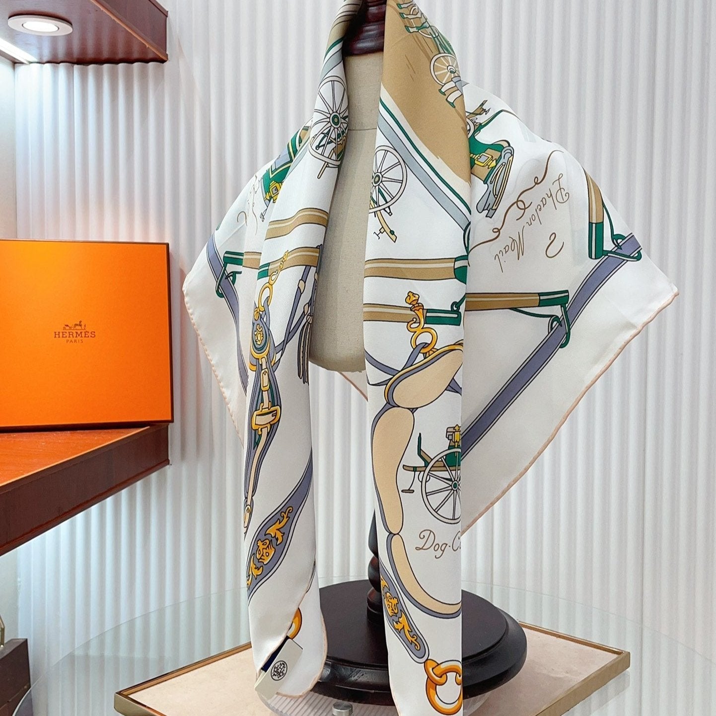 Stately Wheels Scarf 90 CM White Colorful Silk Twill 312874