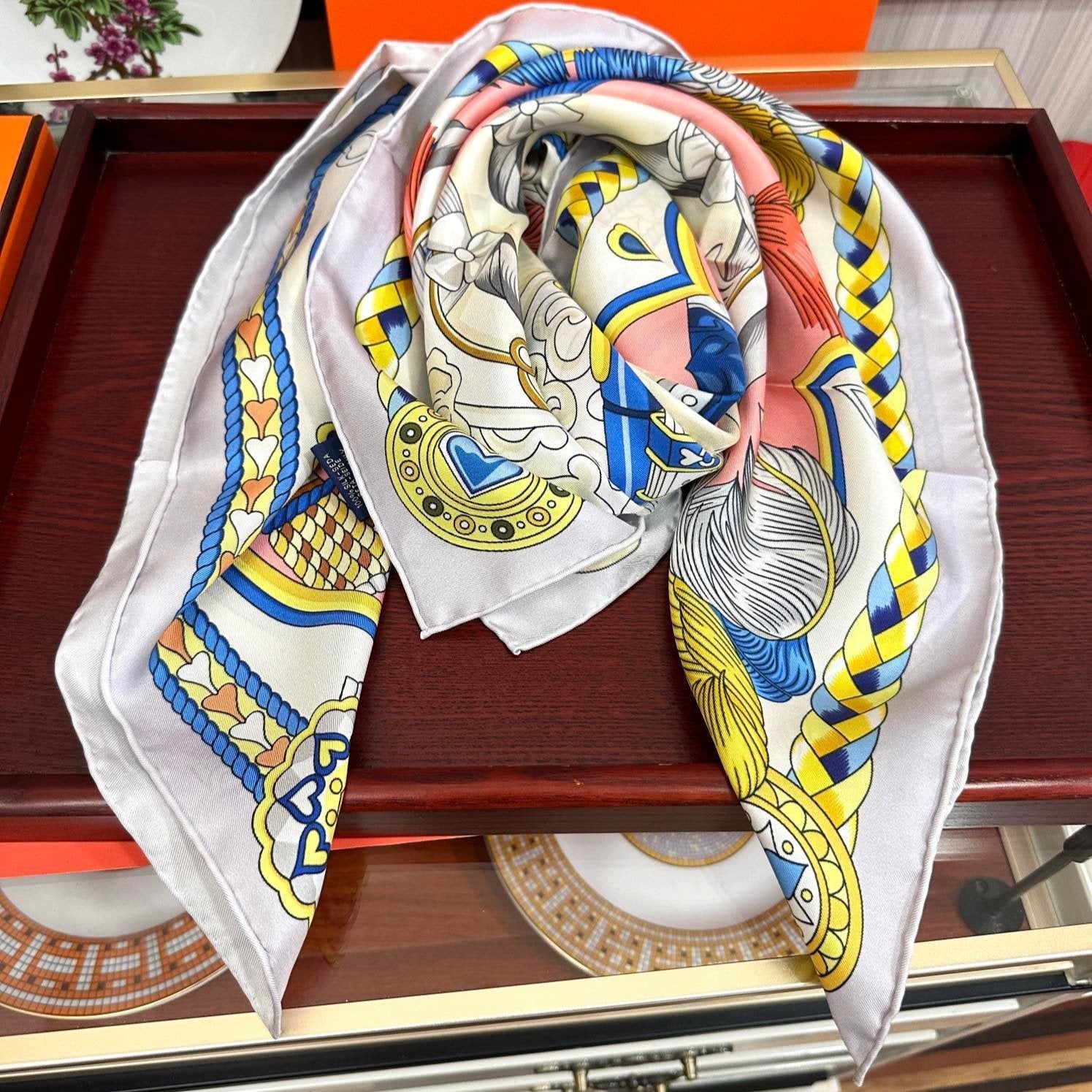 Parade Scarf 90 CM In White Grey Colorful Silk Twill 310306