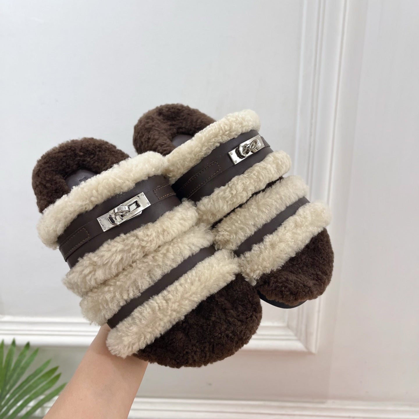 HM Slippers Classic Kelly Sliver Buckle Brown Wool 479616