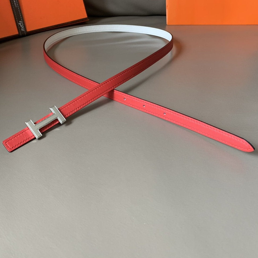 H GOLD BUCKLE WOMEN'S BELT WITH PINK RED LEATHER STRAP 1.3CM