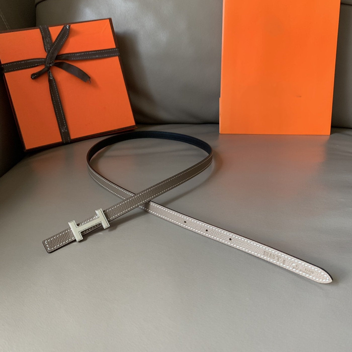 H BELT SILVER BUCKLE GREY BLACK LEATHER REVERSIBLE 3.2CM