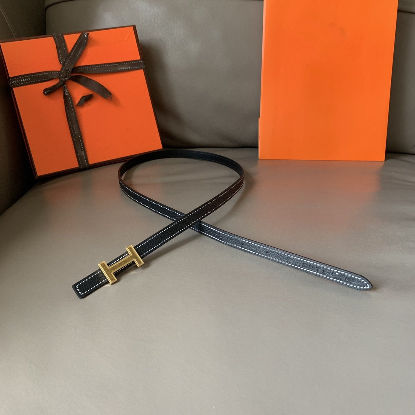 H BELT GOLD BUCKLE BROWN BLACK LEATHER RIVERSIBLE 3.8CM