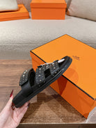 CHYPRE SANDAL BLACK CALFSKIN ATTACH CRYSTALS