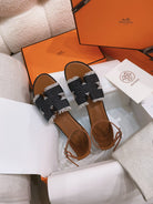- Material: Sandal in Clafskin, Denim with straight cut edges, "H" cut-out detail and thin ankle strap.