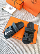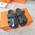 HM Chypre Sandal Black With White Stitching Lambskin 963494